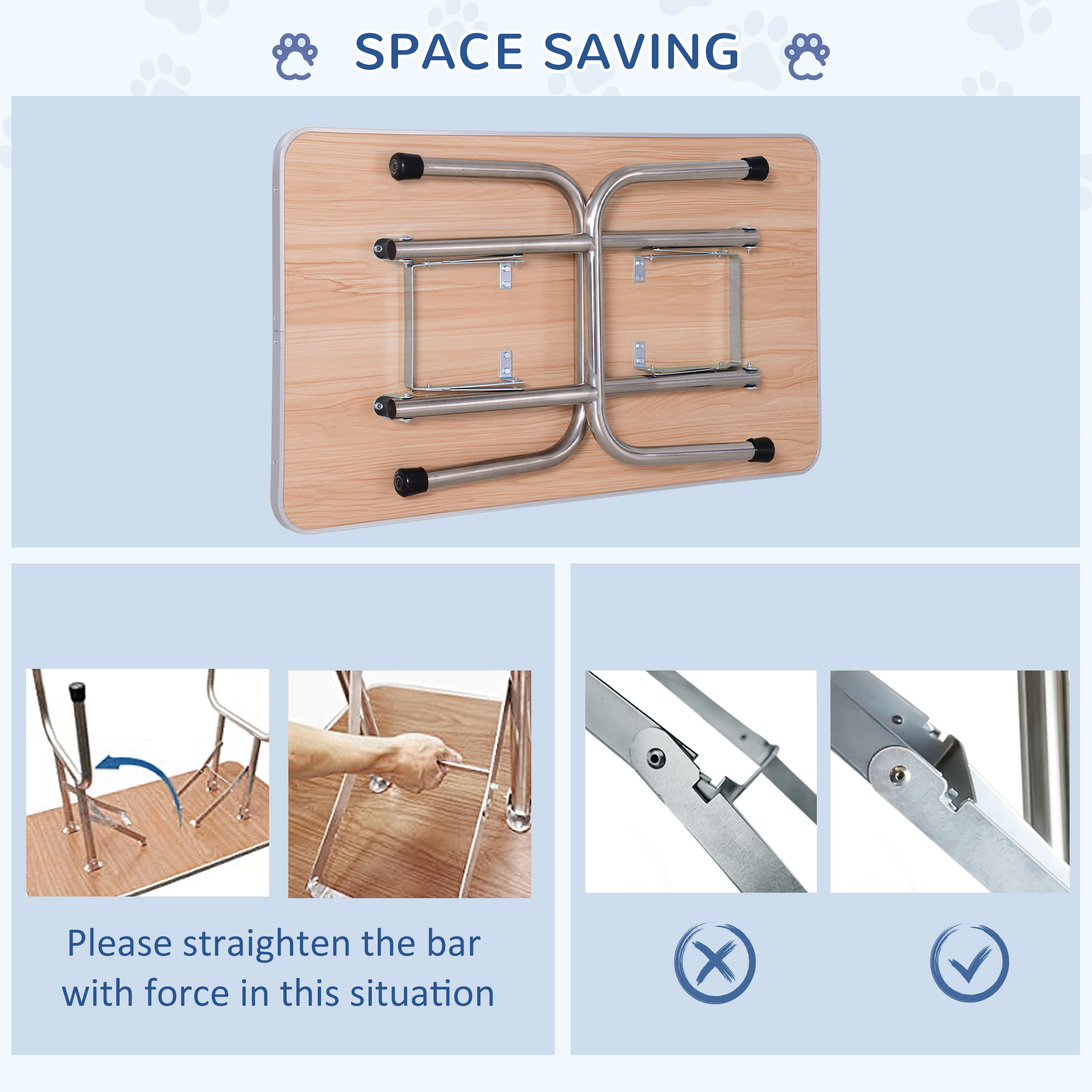 Whether it's for washing, trimming their fur/hair or getting them into tip-top shape, this PawHut grooming table provides you everything you need for your pet grooming needs. Made from metal, the frame is crafted into a large adjustable design which handles up to 100kg in weight, making it suitable many dogs of different sizes, with a large non-slip rubber tabletop from them to stand still comfortably over long periods of time.