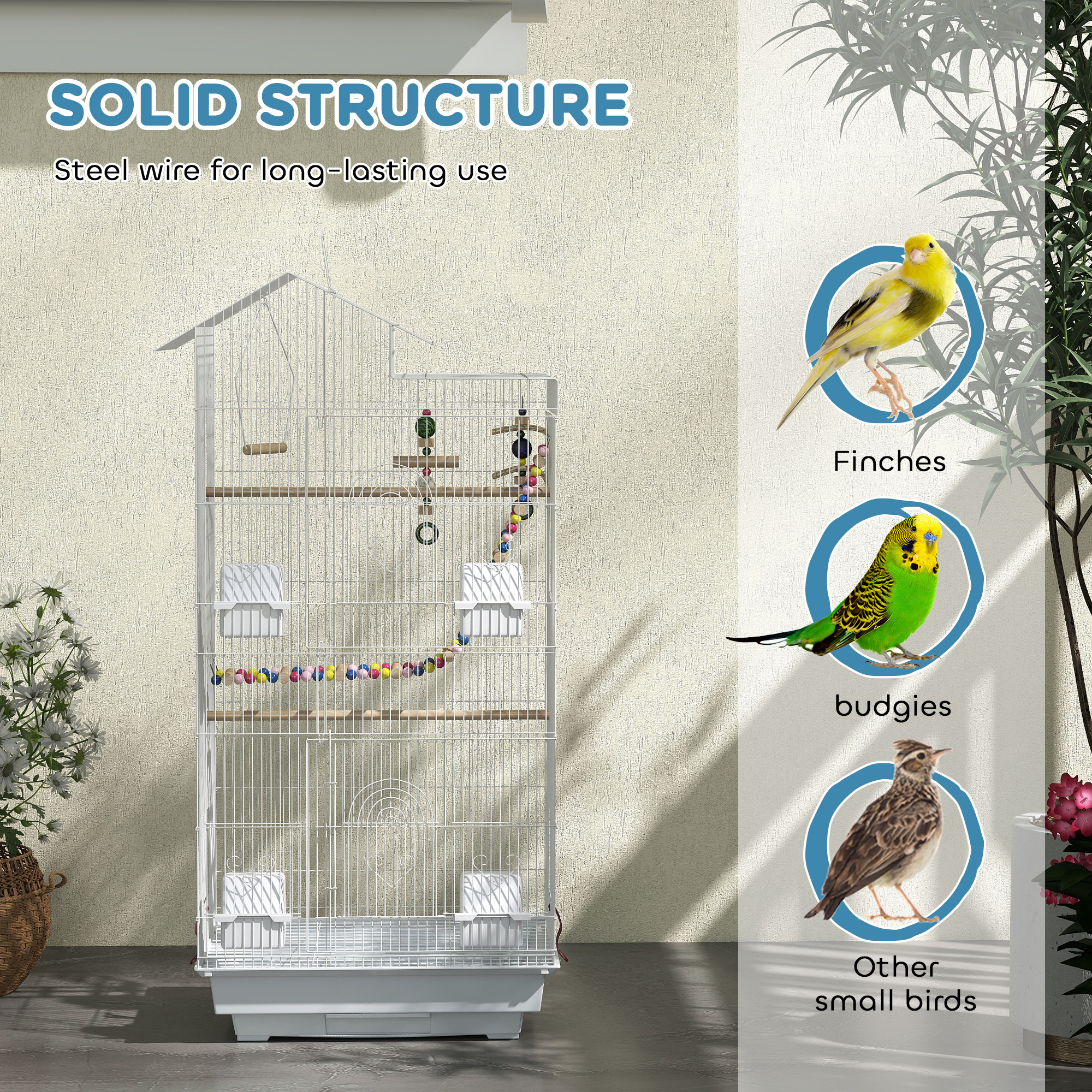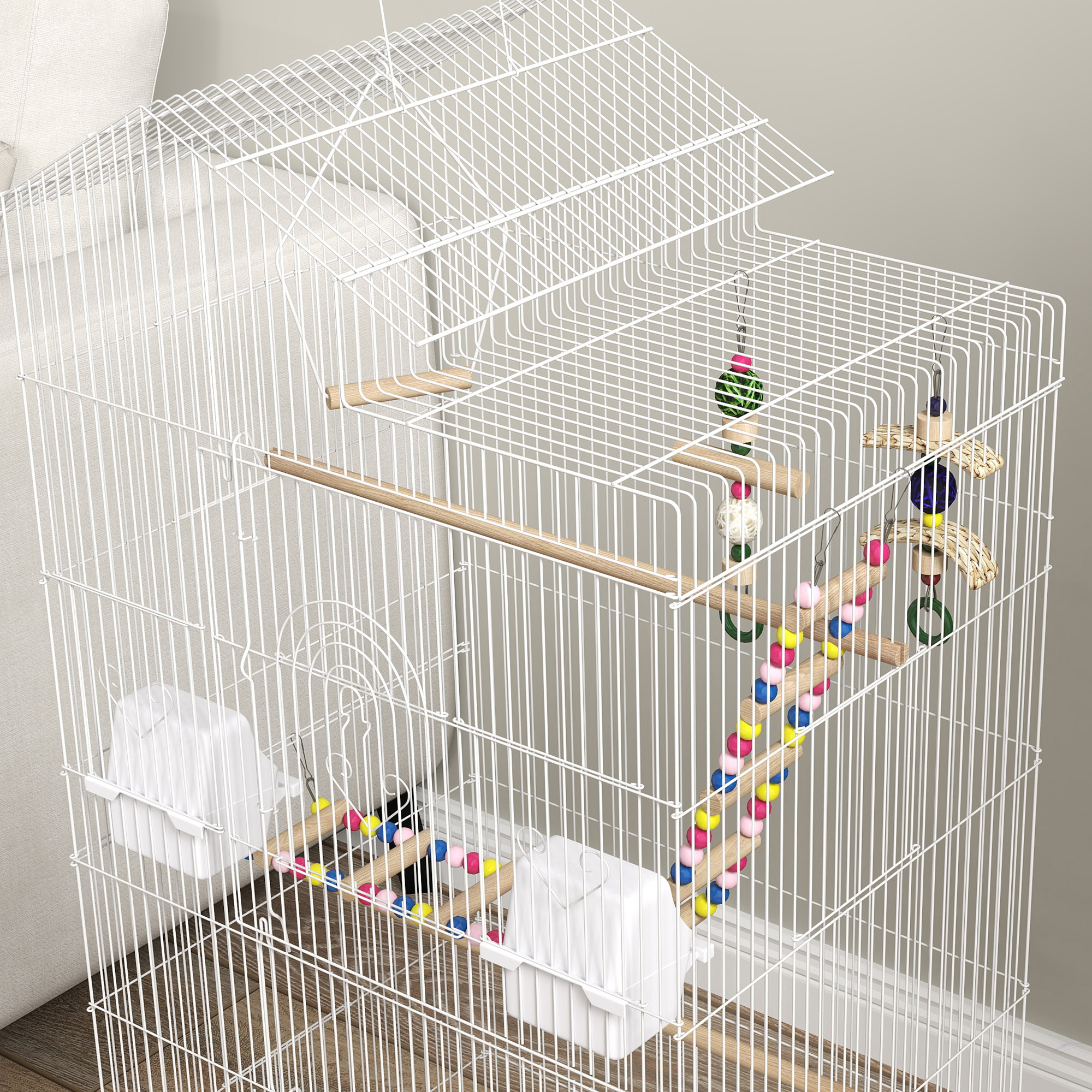 With this spacious bird cage, pets have lots of room to move and stretch their wings, thanks to its vertical design. They'll have different perches to rest on, a swing, ladder, food and water bowls and hanging toys – everything to make their home extra special. Made from stable steel, it's a reliable cage, which is suitable for daily use, whilst the handle on top lets you carry it. Finished with a removable tray for catching bird seeds, it's easy to keep clean, keeping their space tidy.