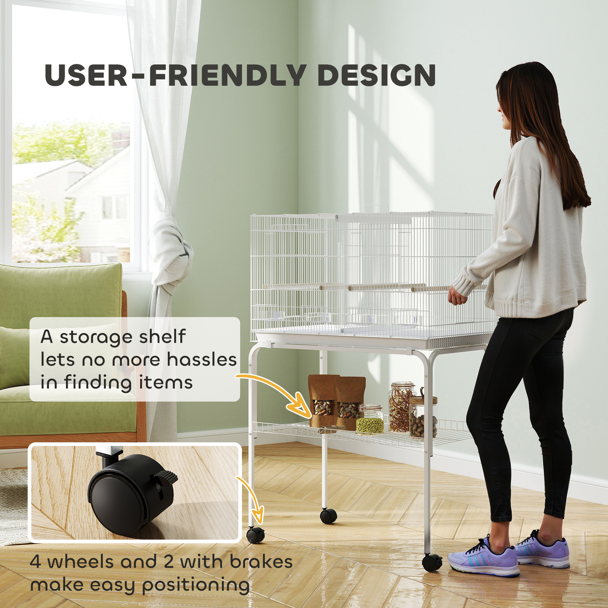 - 1.2cm bar spacing with secure latch prevents bird escapes