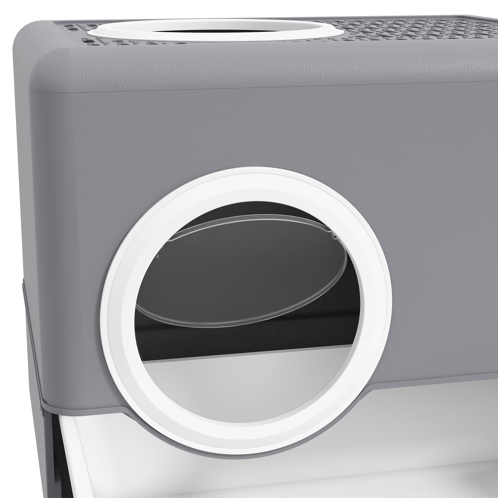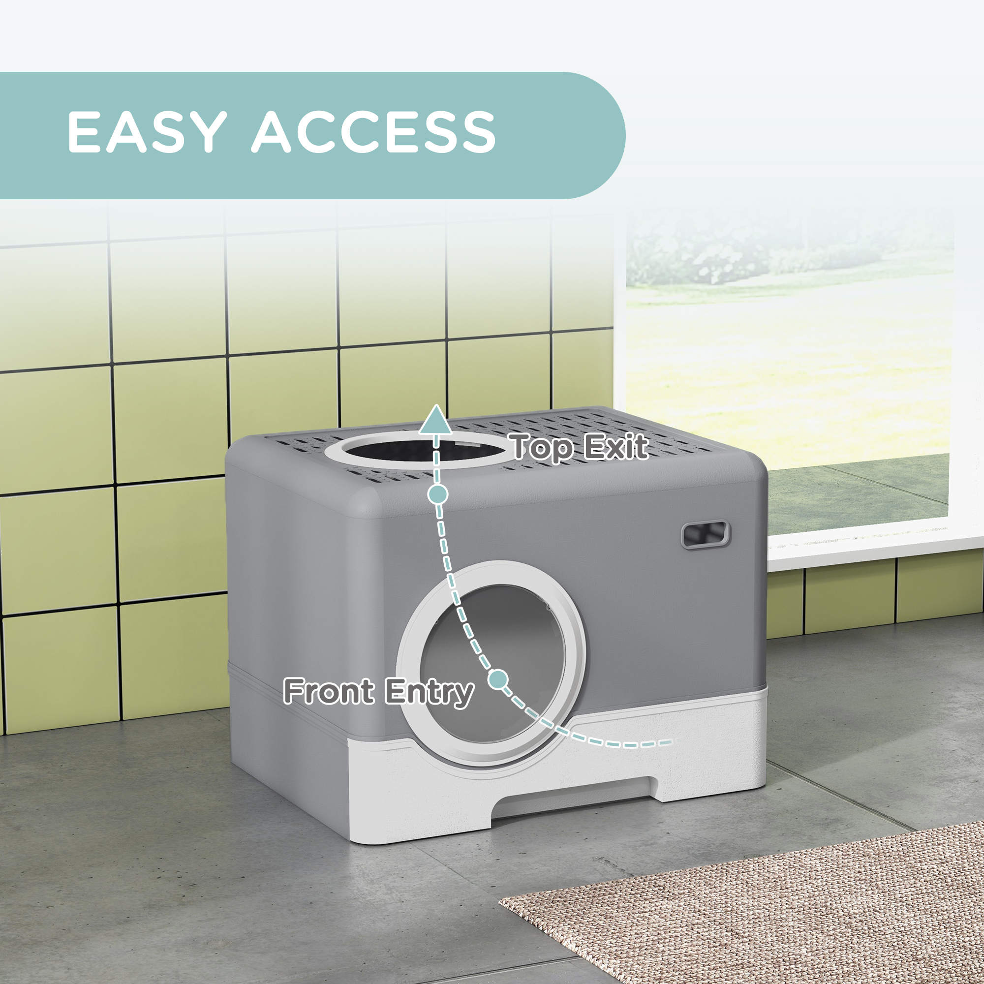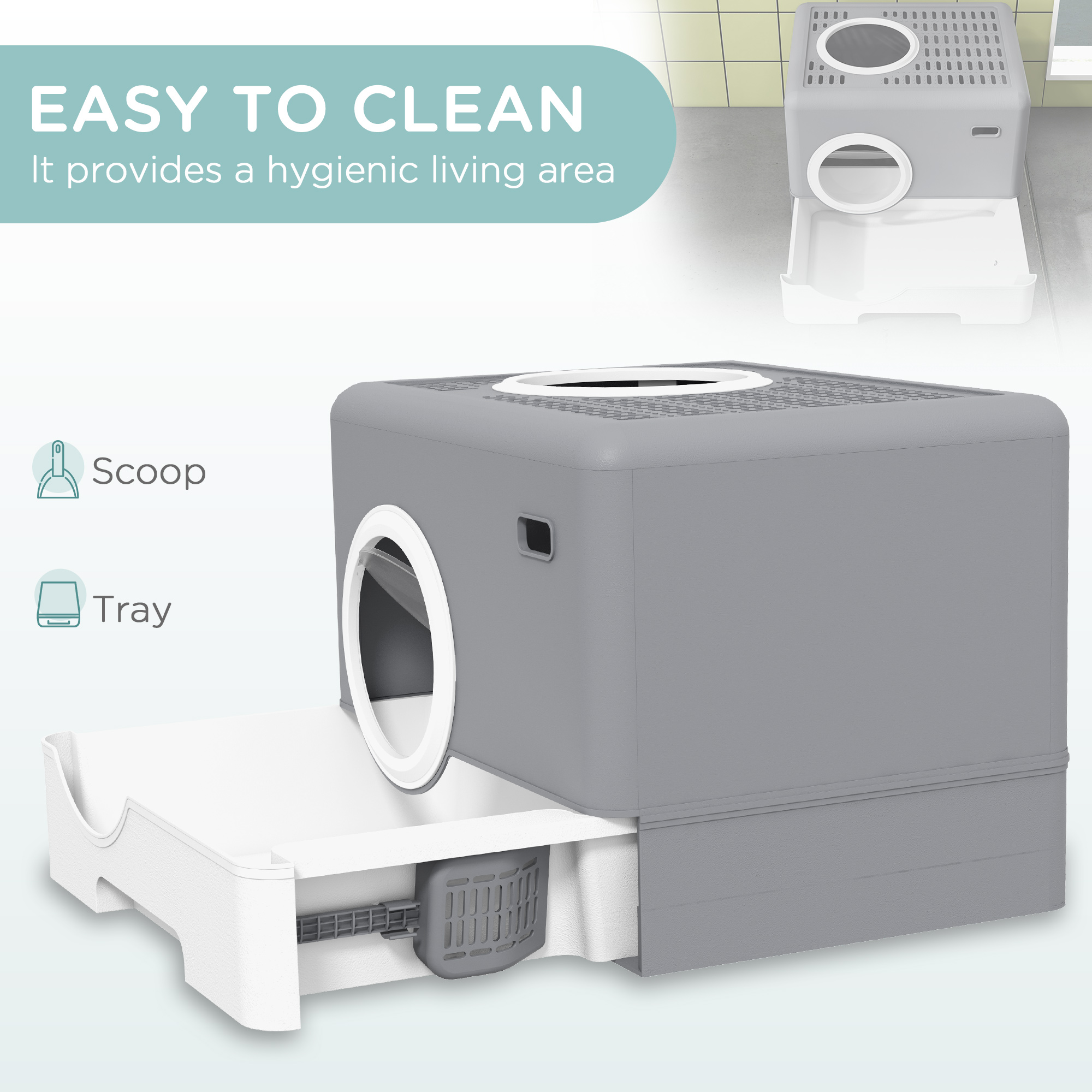 Presenting the PawHut hooded cat litter tray, revolutionising your pet's litter routine. Spacious and enclosed, it provides comfort and privacy to ensure pets feel at ease. Cats enter through the front and exit above, so they don't spread litter around your home, whilst the slide-out tray and scoop are for fuss-free maintenance. Sleek and compact, it blends seamlessly with your décor – it doesn't look out of place. A serene space for pets to use – no mess, no stress.