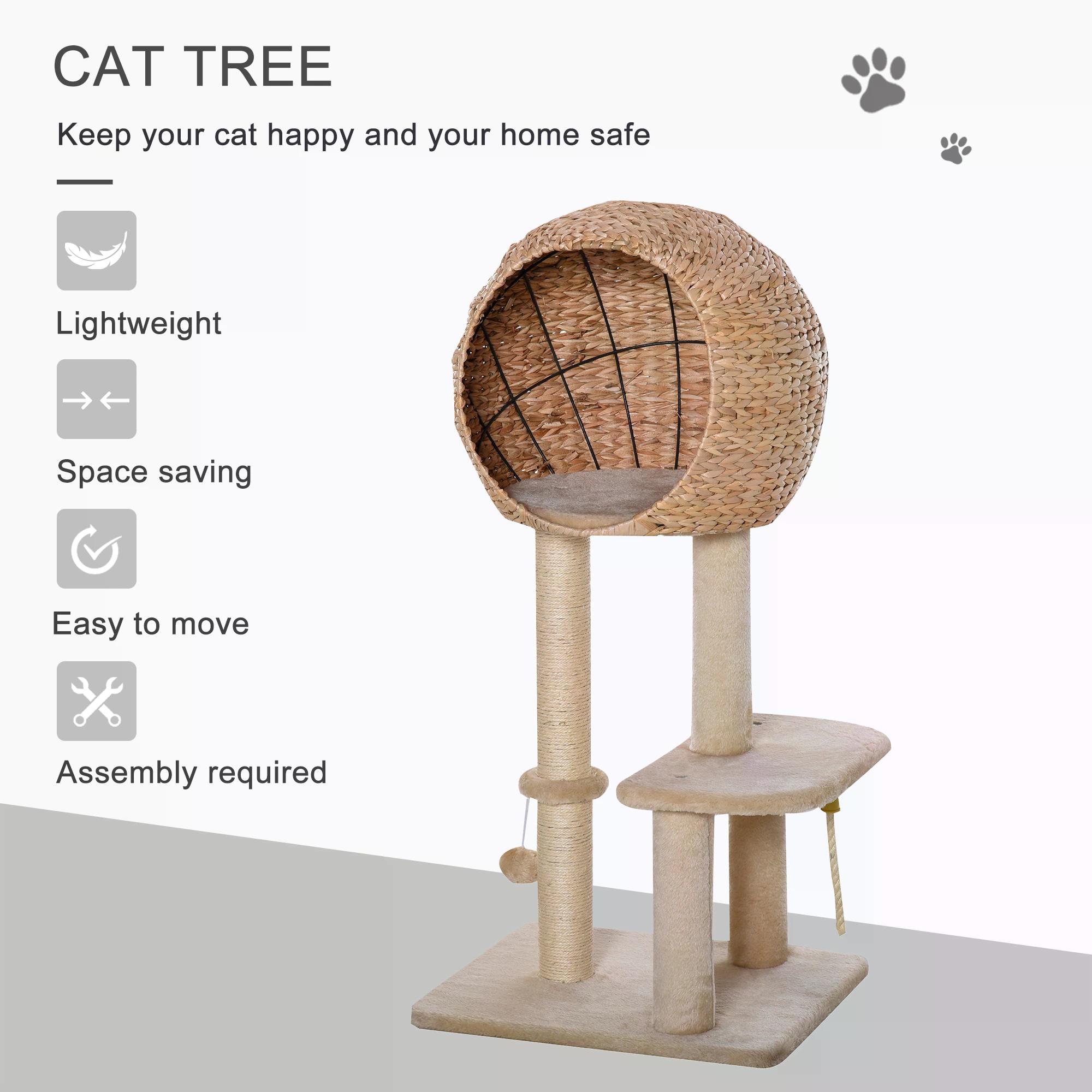 Let them rest in their own dedicated spot - give your cat this PawHut cat towers for indoor cats. This cat climbing tower features the large top house, which comes with a soft inner mat, so they can sleep and relax comfortably. The cat tower also comes with two play balls and a middle perch to keep them entertained and active. The sisal scratcher posts allow them to sharpen their claws safely. There's no place like their (new) home.