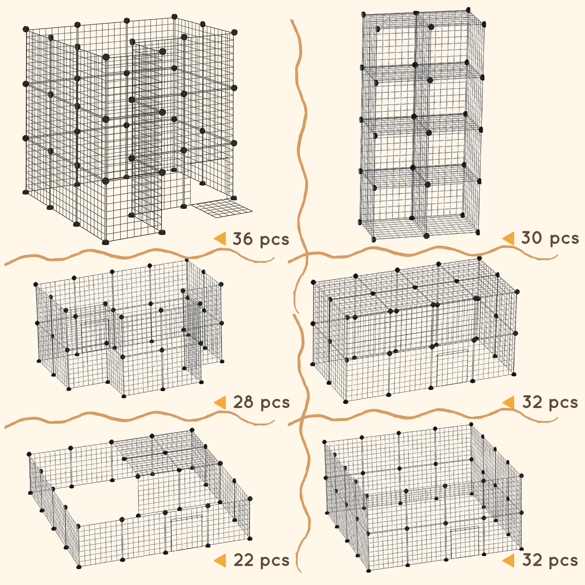 - Chinchilla cage is formed of 36 panels, allowing you to set it to any shape and size required