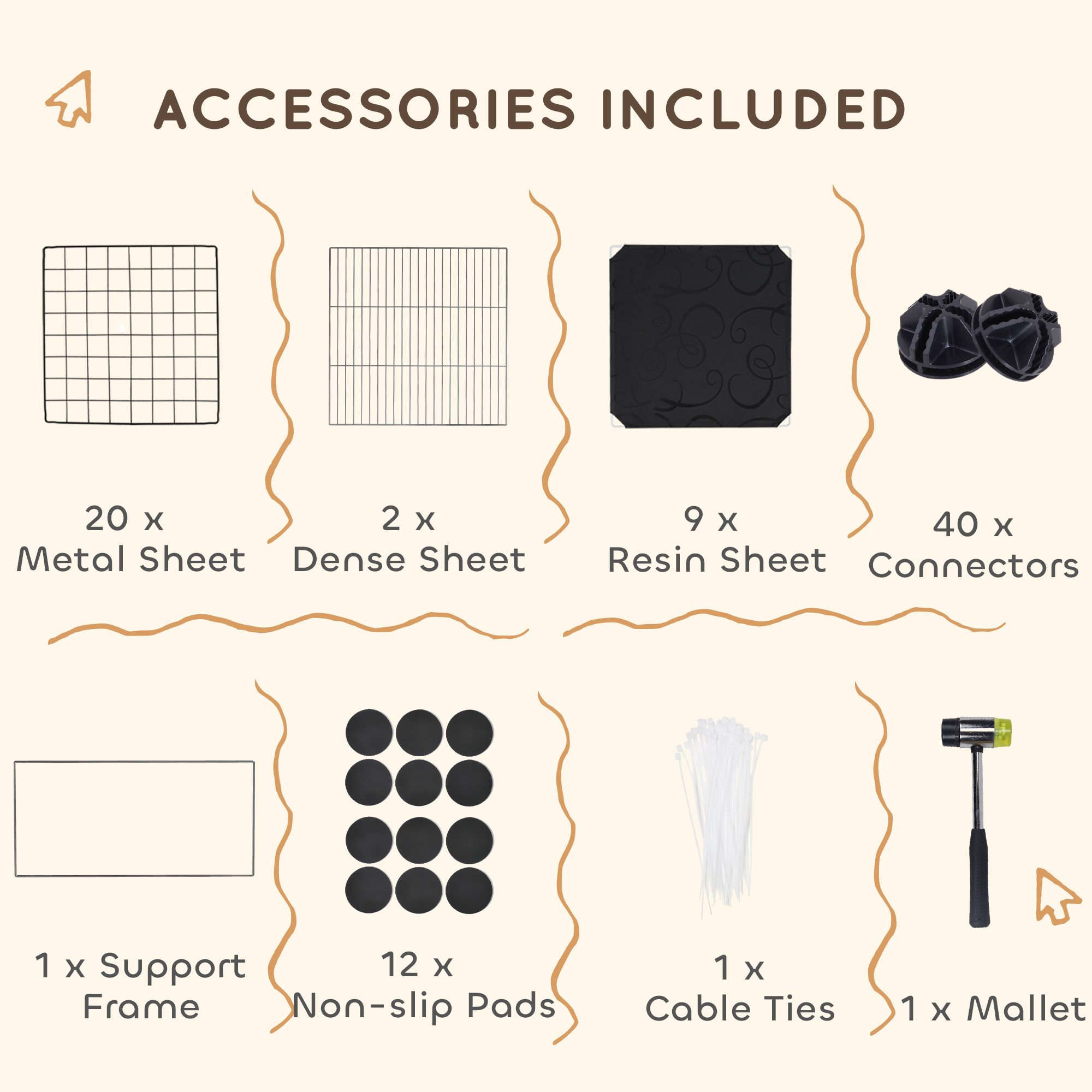 Give your pets the freedom to roam with the spacious PawHut animal playpen. Featuring 31 panels, it's great for guinea pigs and hedgehogs, offering plenty of space to roam and relax. The recommended setup includes two elevated huts to keep them away from moisture and damp. The fence has small spacing to ensure pets cannot escape. It's a safe, cosy space where pets can stay active, making it a great addition for small pet owners.
