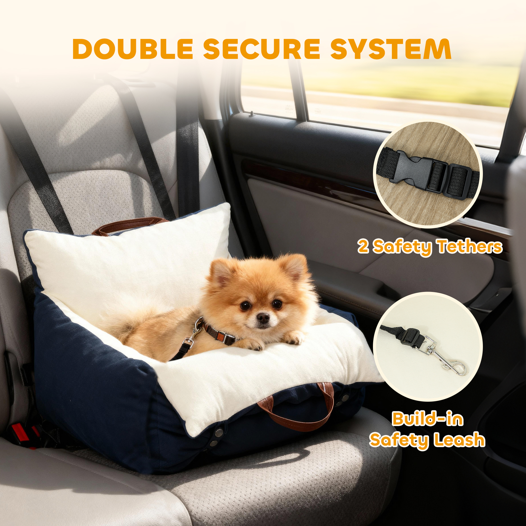 Does your furry co-pilot seem more stressed than excited for car trips? Every sharp turn or sudden stop can send them sliding, turning a joyful journey into a stressful ordeal. The PawHut dog car seat provides a secure, cloud-like embrace, anchored by double straps and an internal tether. Your companion can now relax in cushioned comfort in this pet car seat, safely enjoying the view while you drive with complete peace of mind.