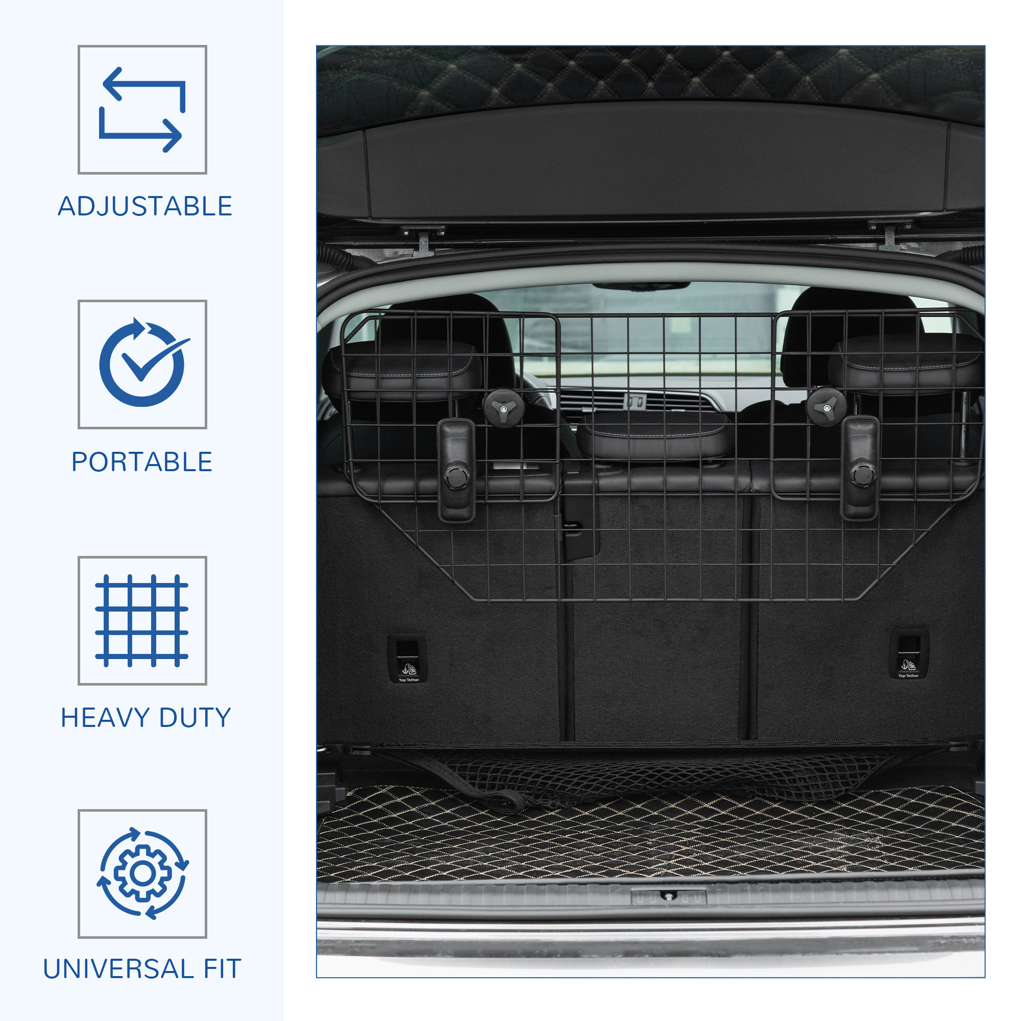 Traveling with pets? Keep them safely in the back with this PawHut dog guard for car boot, away from the driver and passengers. Made with metal mesh for sturdiness, keeping firmly in shape when in use. The width is adjustable from 90-120cm, making it suitable for different sized vehicles. This car barrier for dogs is easy to install – you don't need any tools, just place it at the back of your vehicle, so you're set for safe car trips with your pet.