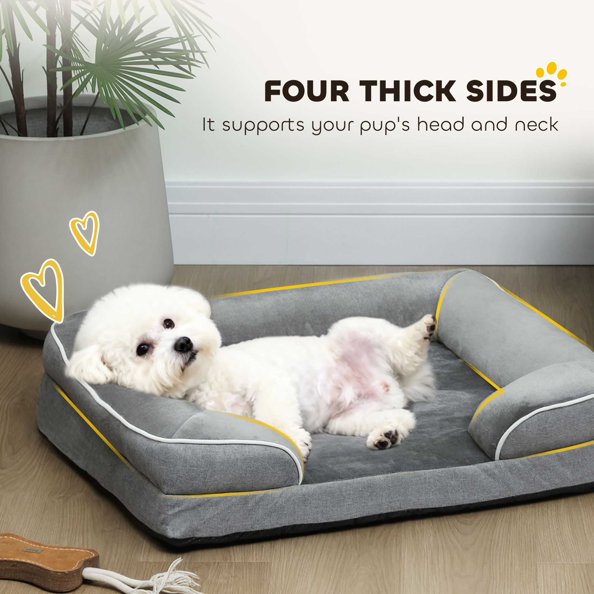 Give your small pet a comfortable night's sleep with this PawHut dog bed. Designed with cooling gel memory foam to relieve joint pressure, it offers a wonderful blend of support and comfort. The three-sided bolster provides a secure, calming space for pets to rest, while the removable, machine-washable cushion keeps the bed fresh and inviting – promoting deep, restorative sleep and cosy relaxation.