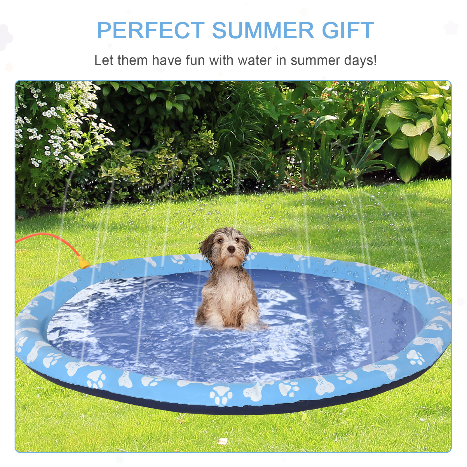 Worried about your dog in the summer heat? Flimsy pools tear easily and complicated setups are a hassle. The PawHut dog splash pad offers a stress-free solution. Crafted from thick, slip-resistant PVC, it connects to any hose for instant fun. This foldable dog paddling pool is also portable, bringing safe, refreshing water play to your garden or the park.