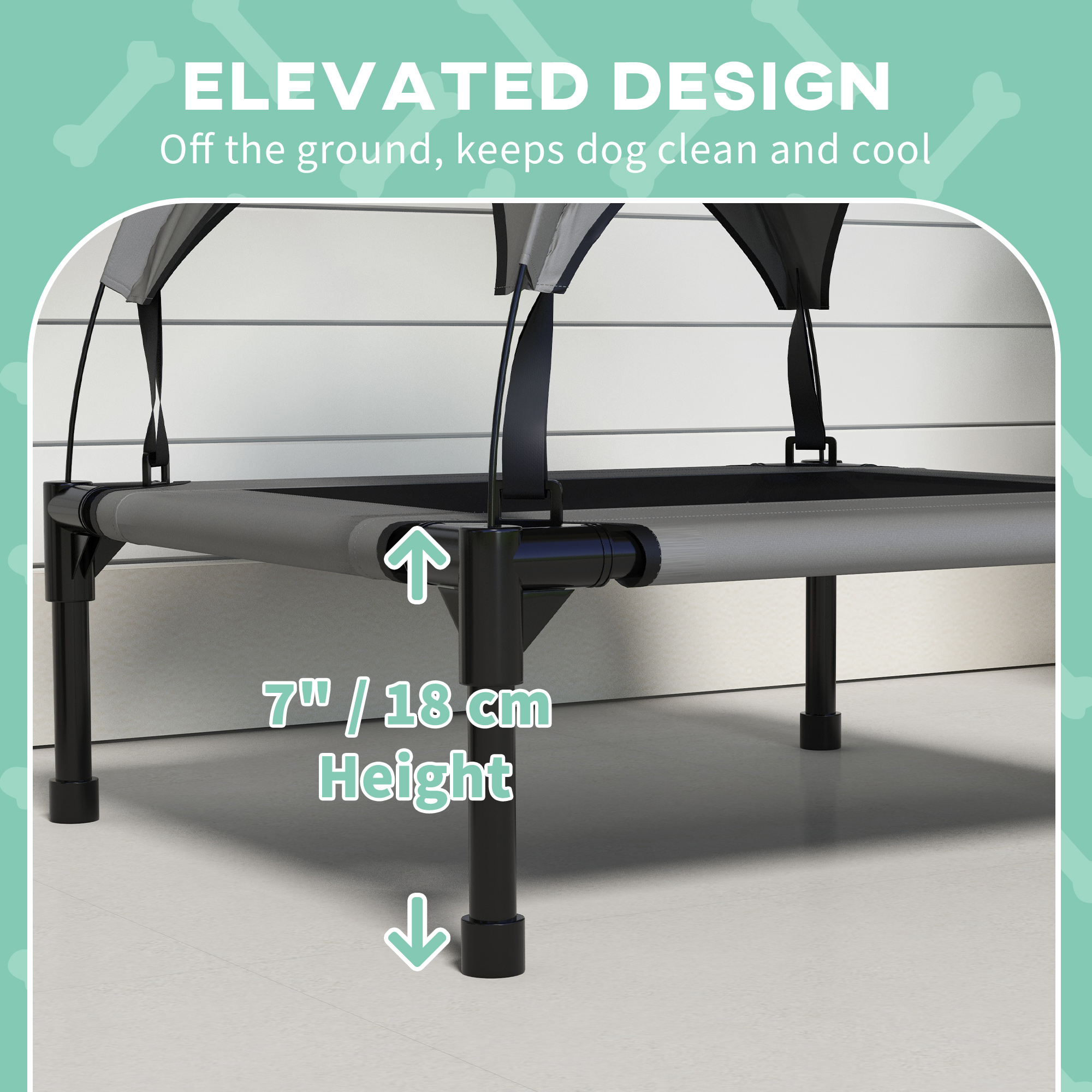 Spoil your pets with PawHut's elevated dog bed – the epitome of comfort and style. With a water and UV-resistant canopy, it shields your companion from sun and rain, whilst the mesh cover ensures optimal airflow, keeping them cool and cosy. Designed for relaxing outdoors, its raised base keeps them from the cold and dirty ground for maximum comfort. A luxurious retreat for pets to revel in, it's a must-have for all dog owners.