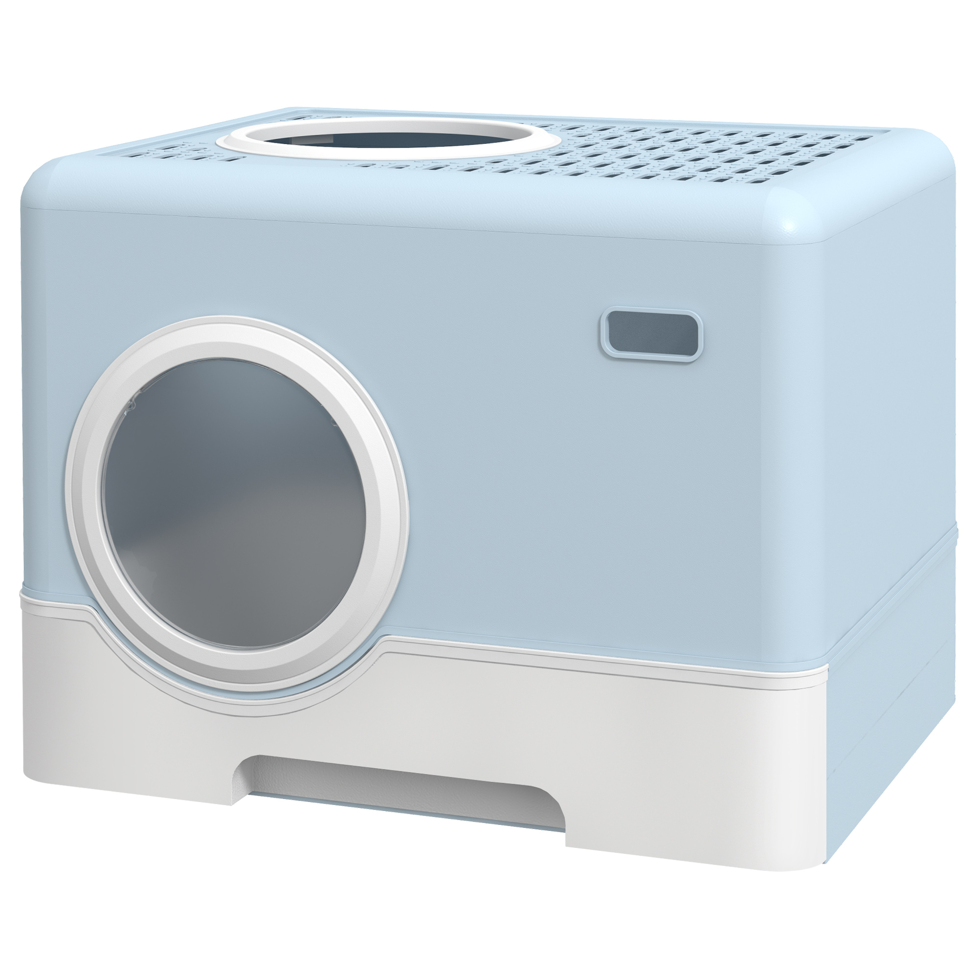 - The top has holes to contain mess inside the litter box