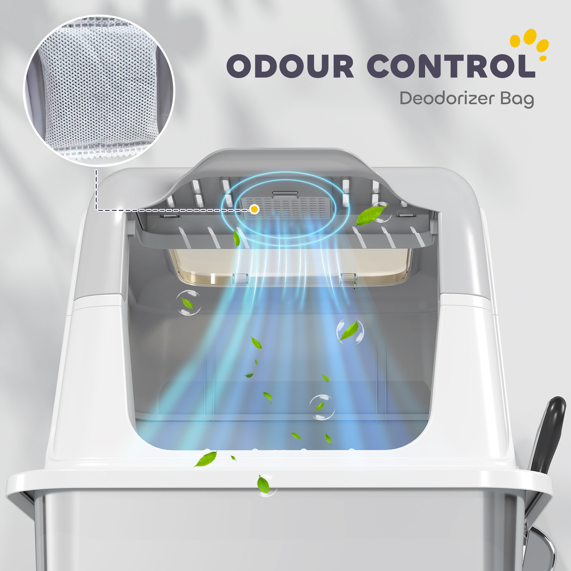 Discover the magic of a mess-free home with the PawHut Enclosed Cat Litter Box! Boasting a stainless steel tray that's a breeze to clean, this cat litter tray is both odour-resistant and scratch-proof. Its smart front-entry and top-exit design keeps floors clean, while the sand drop area cleverly traps escaping litter. Plus, it includes a deodorizer bag to keep the area fresh. A fresh approach to your kitty's needs!