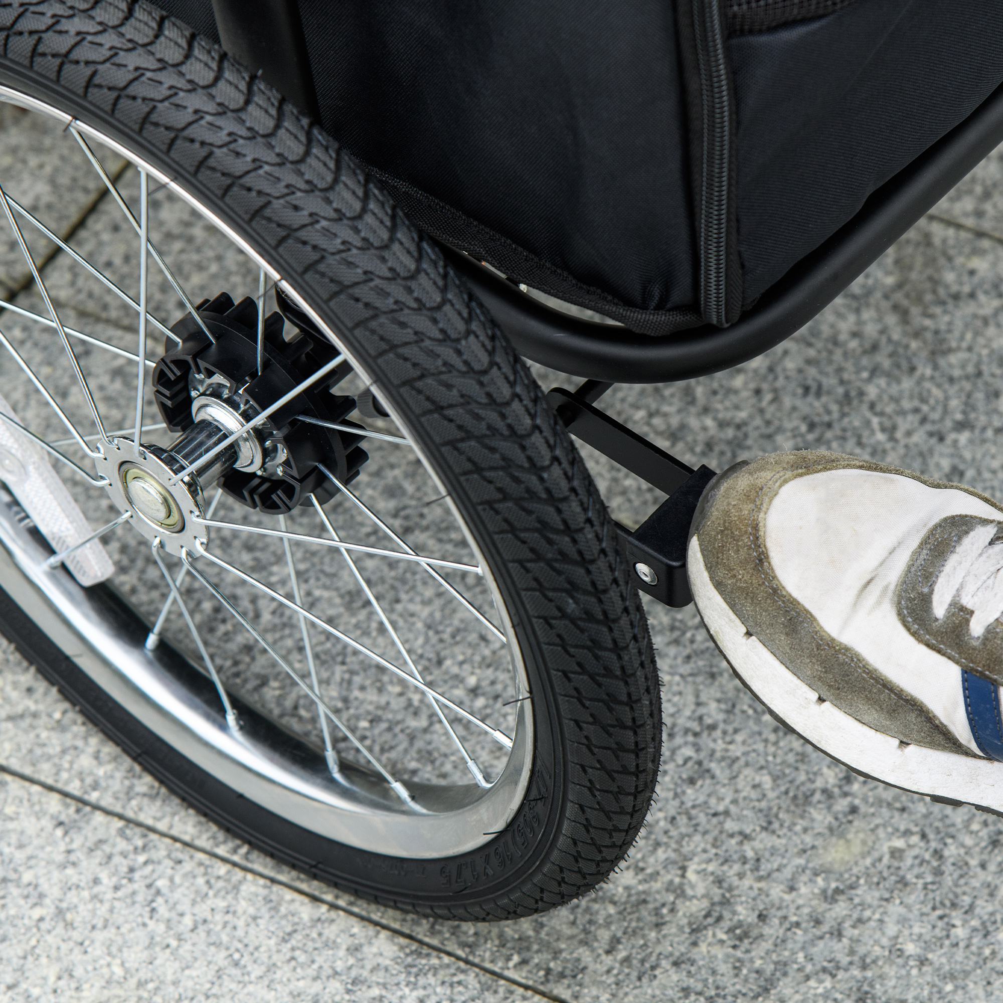 - Inflatable rubber wheels ensure smooth strolling on different terrains. The breaks keep the pet stroller in place when needed