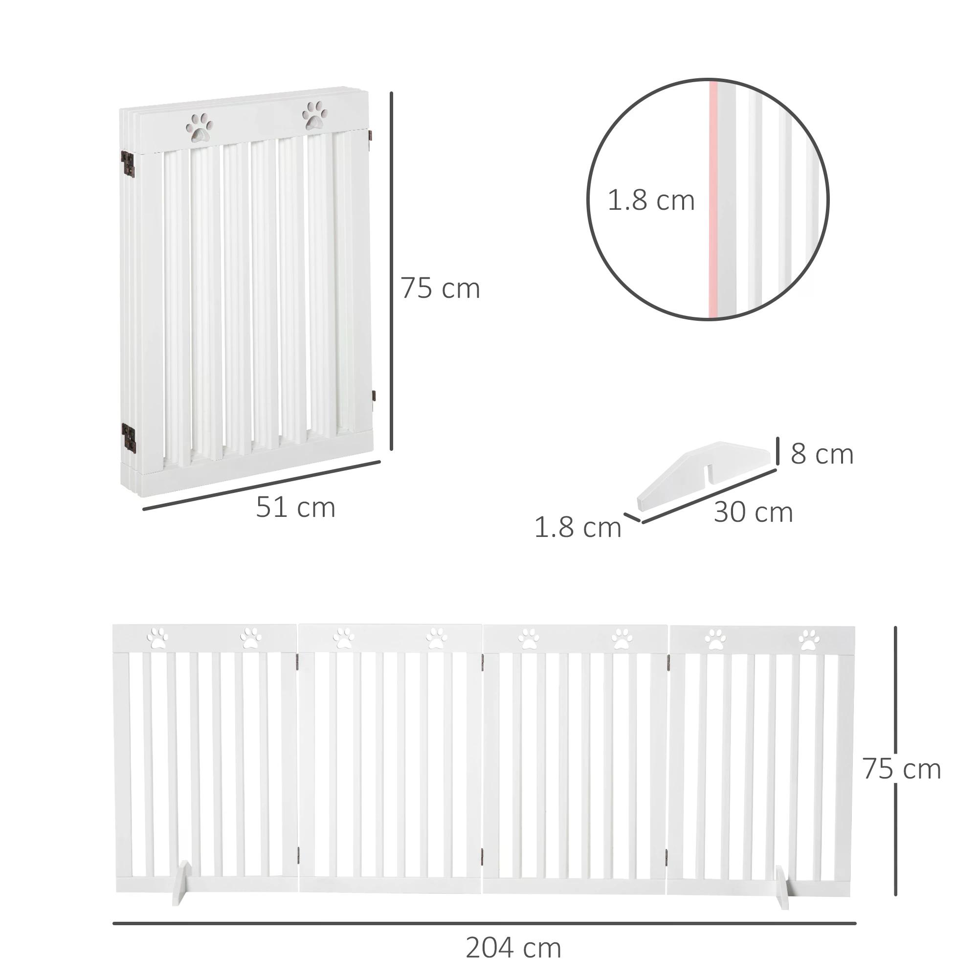 This PawHut pet gate will safely and effectively limit the range of your pet's activities. It's formed of four MDF panels, each connected by hinges so you can bend it to different shapes when required. When not in use, it can be easily folded up to save space. Suitable for doorways, stairs, entrances and more, this is a great product to help keep pets protected when you need that extra helping hand.