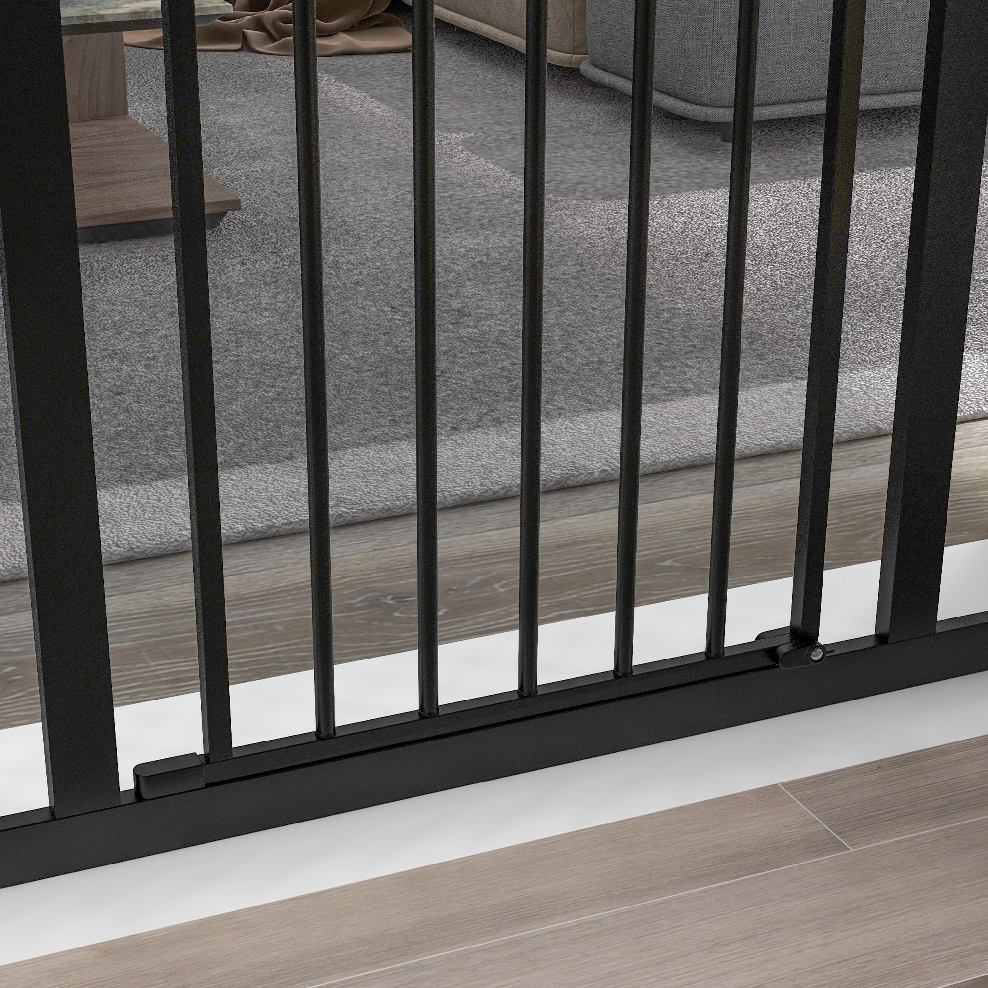 Keep pets away from specific places easily with this safety gate from PawHut. It's made from metal for strength and its width can be adjusted between 74cm and 100cm, meaning it will fit properly in door frames and other passages. Fitted with a middle door to pass when needed, the slide-and-lift handle is easy to use so you can walk through quickly. Two rotating locks on the bottom allow the door to opened both ways, with a double locking mechanism to finish for extra safety.