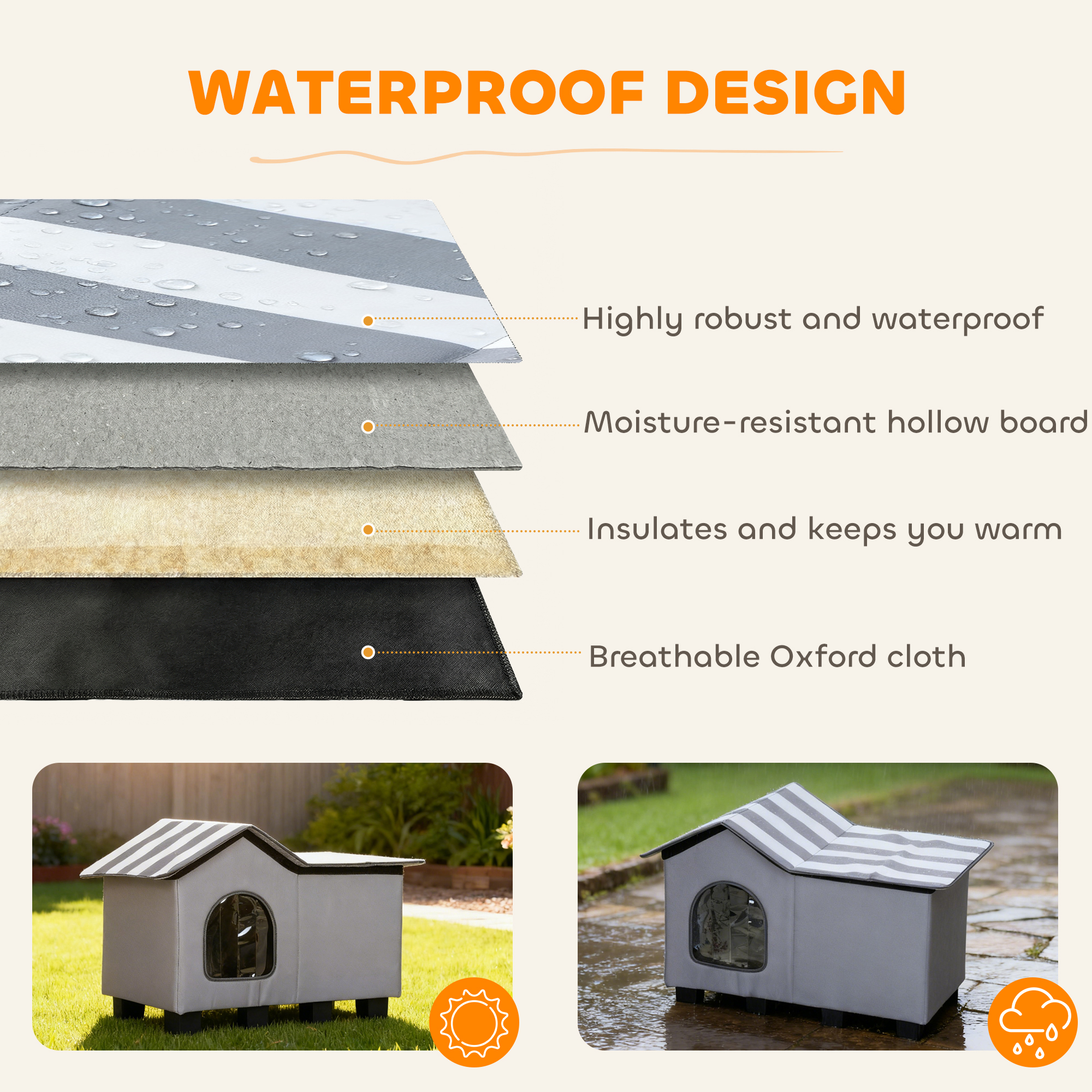 - Water-resistant plastic and oxford fabric, providing a dry and reliable shelter
