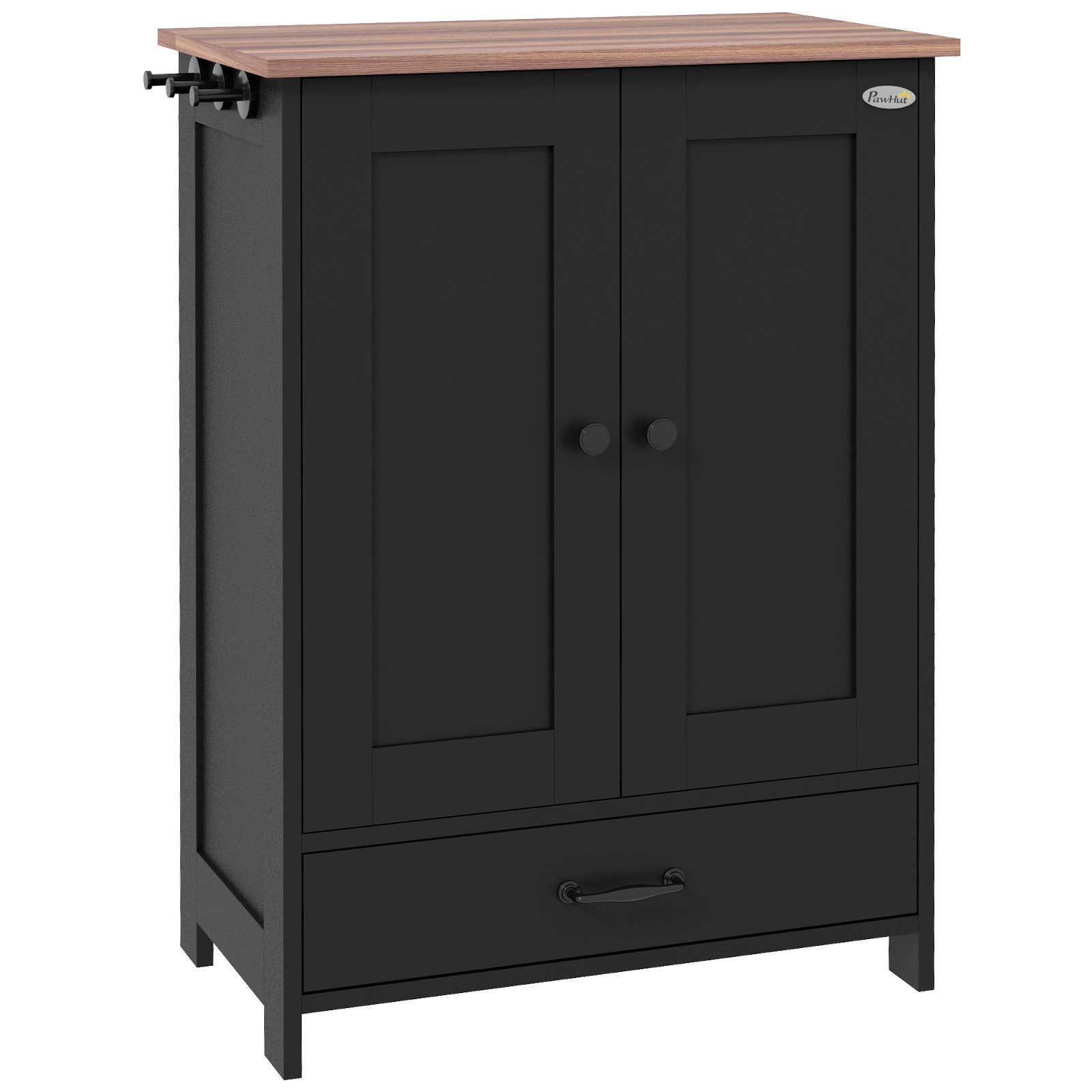 A sleek solution for feeding and storage – this PawHut pet station gives medium dogs a tidy and comfortable space to enjoy meals. Two hidden bowls are built into the cabinet, keeping food and water organised, while the spacious storage area – with a removable panel and adjustable height – holds treats, toys and more. Three side hooks keep leashes and collars within reach, while the large top offers space for displaying pieces. Finished in classic black, it blends seamlessly into any home.