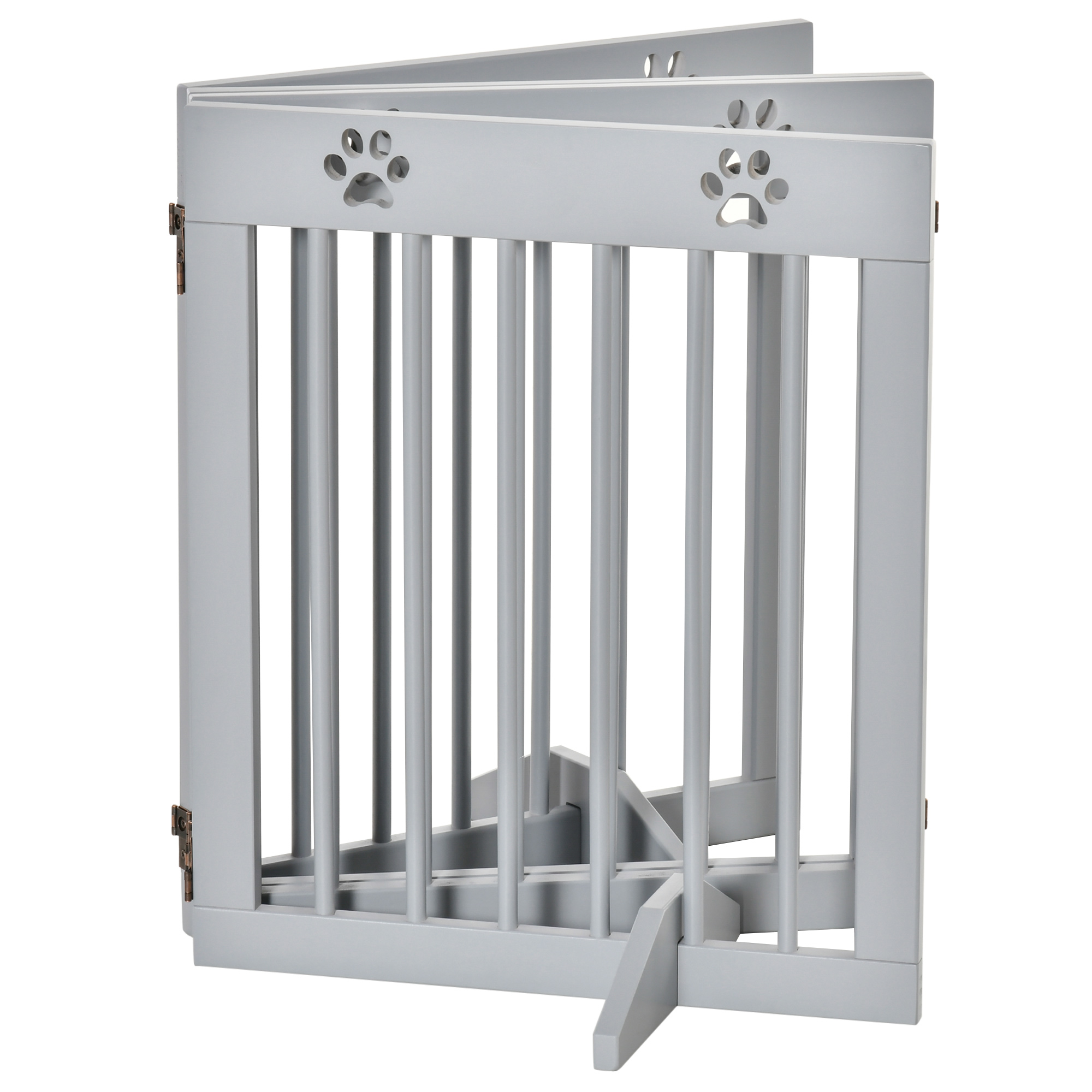 This PawHut pet gate will safely and effectively limit the range of your pet's activities. It's formed of four MDF panels, each connected by hinges so you can bend it to different shapes when required. When not in use, it can be easily folded up to save space. Suitable for doorways, stairs, entrances and more, this is a great product to help keep pets protected when you need that extra helping hand.\n