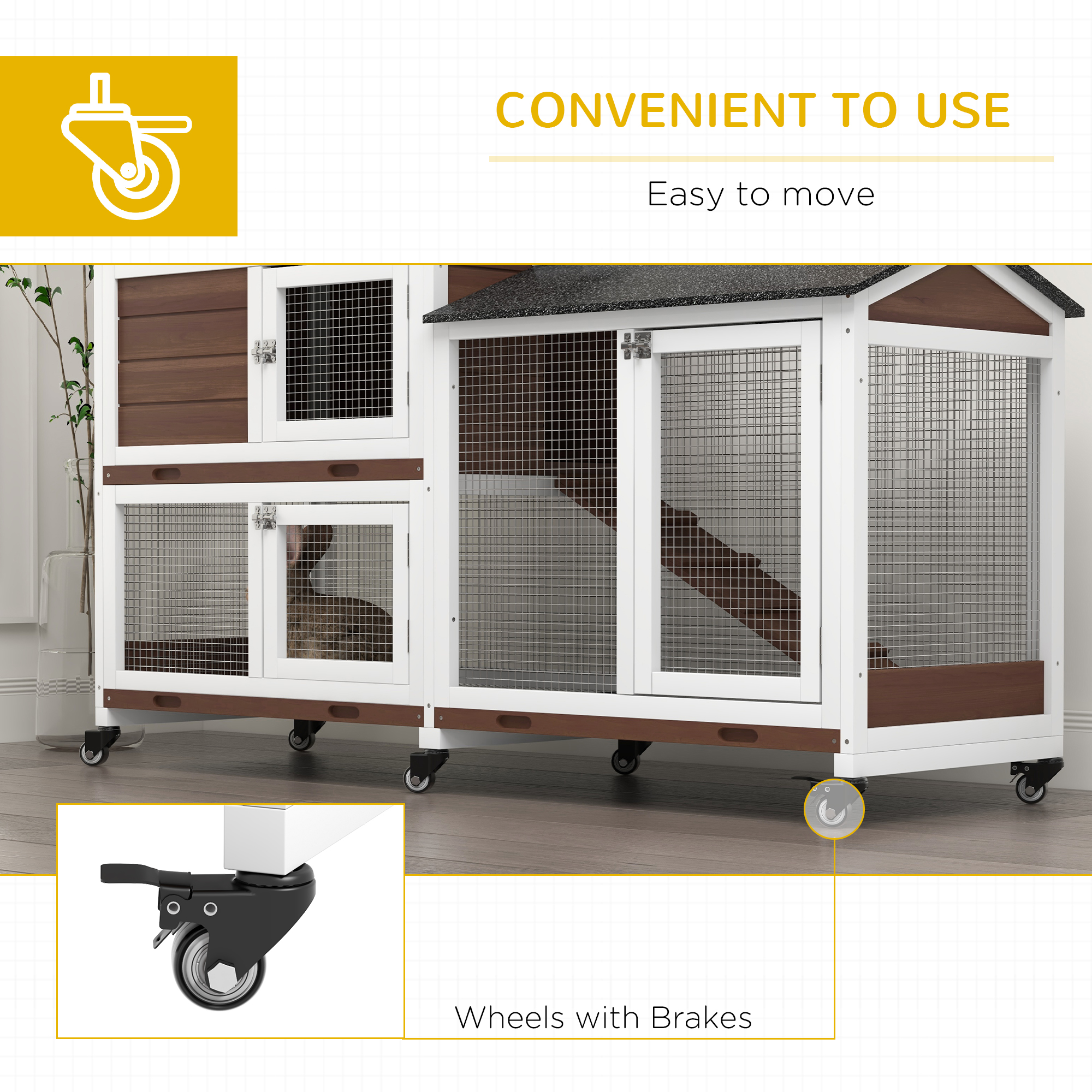 A wonderful resting space for rabbits and other small pets – this spacious rabbit cage from PawHut consists of two floors with a private house and a guinea pig run – they'll roam easily using the ramp. Made from solid fir wood, the indoor guinea pig cage is covered in water-resistant paint for protection against wet weather, whilst the tilted asphalt roof ensures the area is dry. Watch your pets through the mesh wire, which keeps the area ventilated.