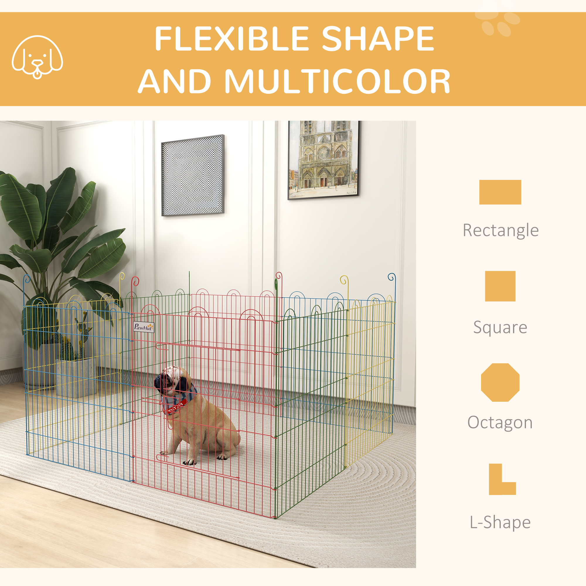 Create a temporary secure area for smaller and younger pets - go for this playpen from PawHut. The compact design means it is easy to store away and move with you when required. There are eight separate panels to form playpen into different shapes. Comes with a step-through door for easy access in and out, with a lockable latch for security. Can be used both indoors and outdoors, suitable for cats, kittens, puppies, dogs, hamsters, bunnies and so forth.