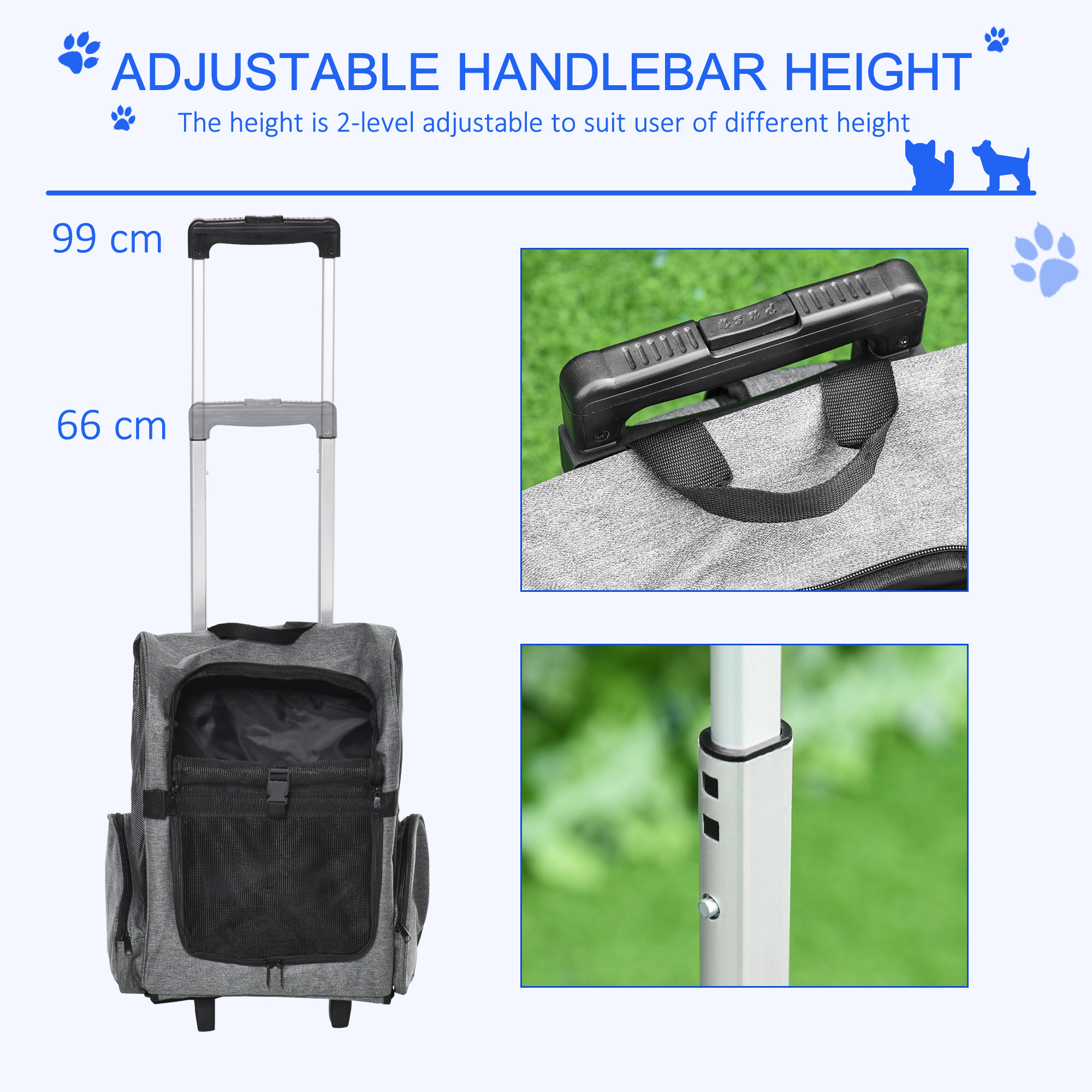 This puppy carrier is a great accessory to have. The cat carrier is made with a sturdy frame and oxford cloth to make it lightweight and secure, can be used as a trolley or as a back pack. Comes with an extendable handle and wheels for easy movement. This dog carrier is comfortable for your pet and a great item for your travel needs.