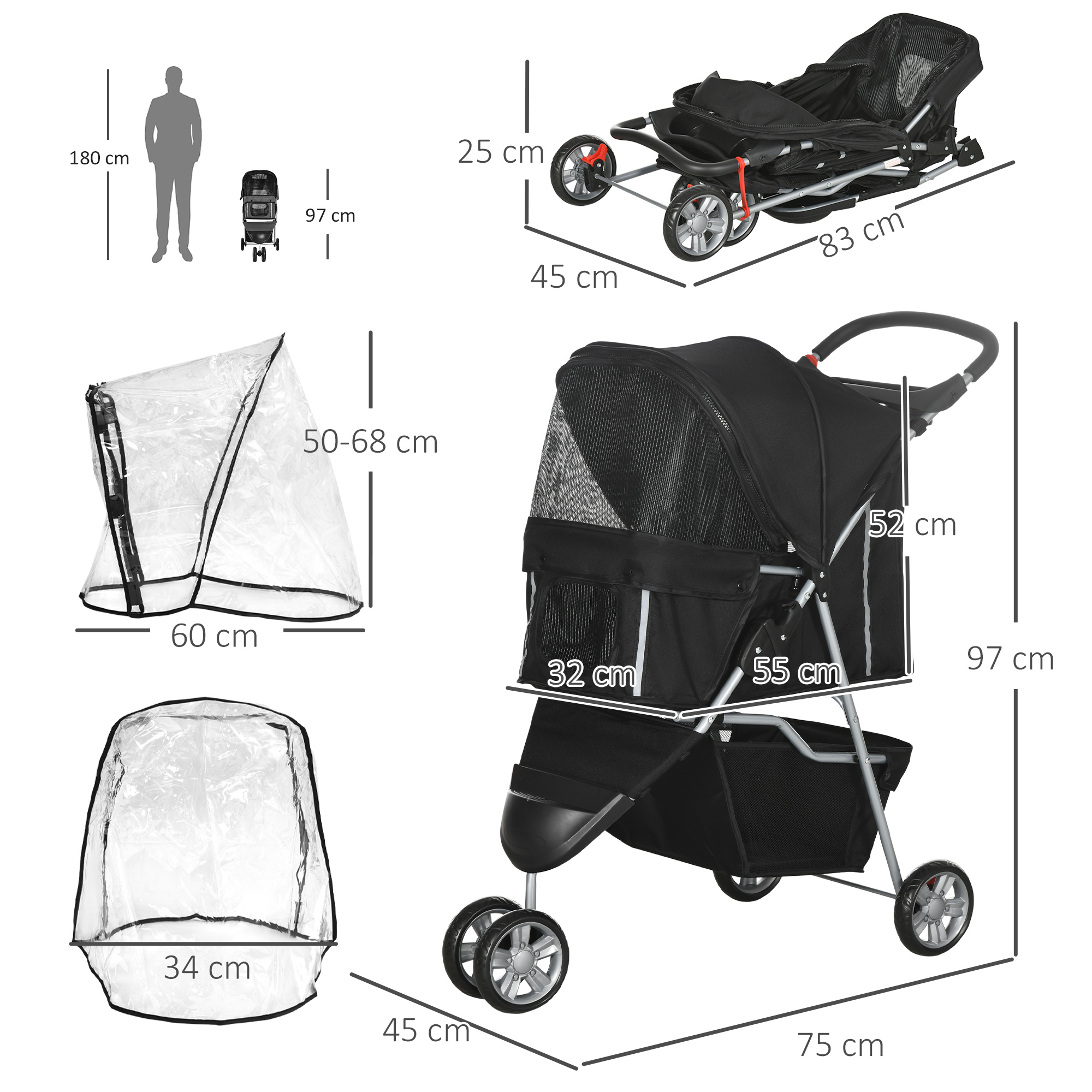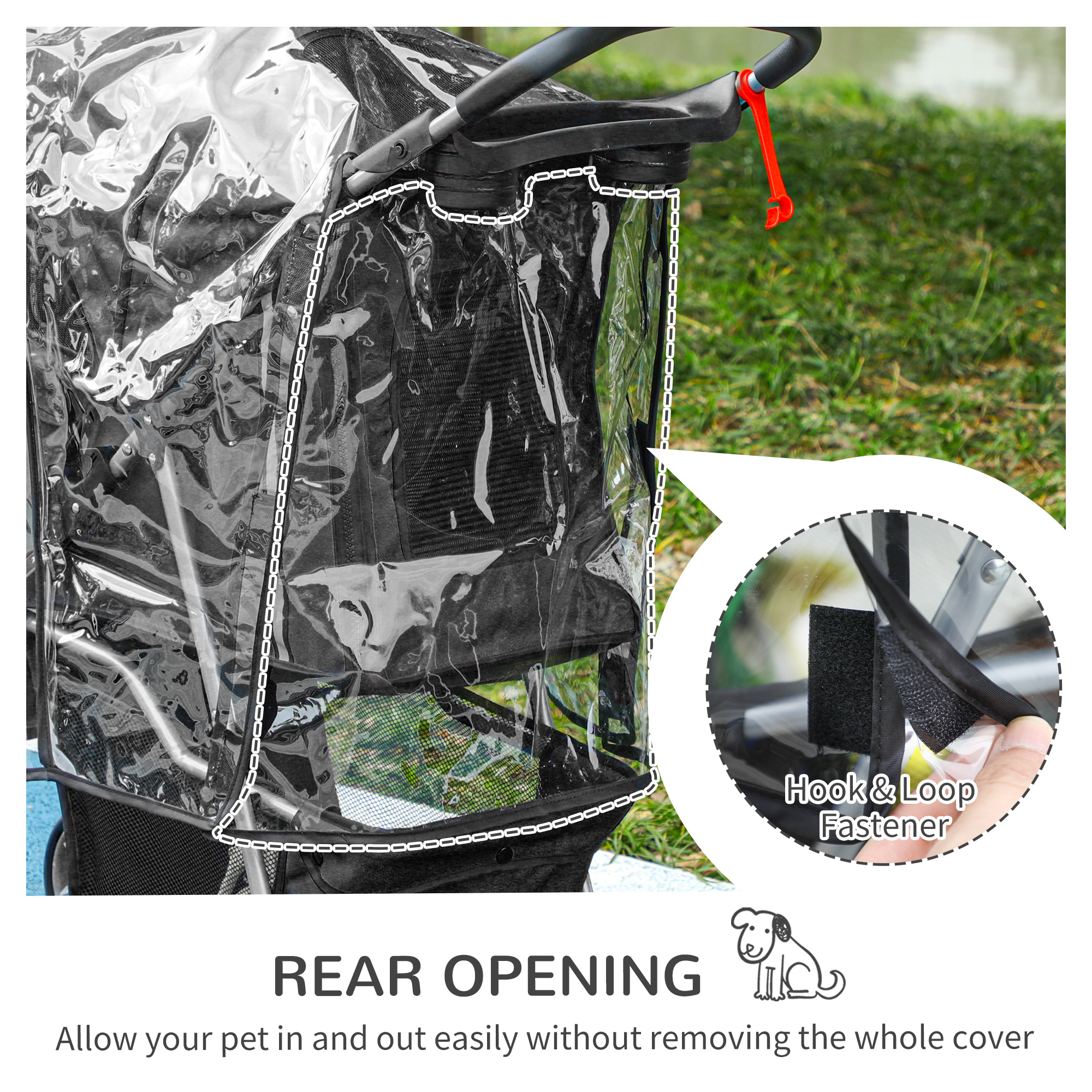 - The dog pram stroller buggy Includes a rear opening for pets to easily access