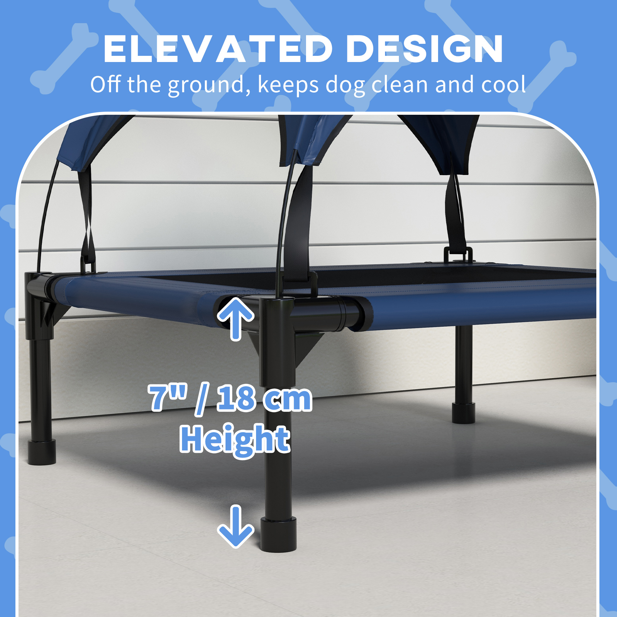 Spoil your pets with PawHut's elevated dog bed – the epitome of comfort and style. With a water and UV-resistant canopy, it shields your companion from sun and rain, whilst the mesh cover ensures optimal airflow, keeping them cool and cosy. Designed for relaxing outdoors, its raised base keeps them from the cold and dirty ground for maximum comfort. A luxurious retreat for pets to revel in, it's a must-have for all dog owners.