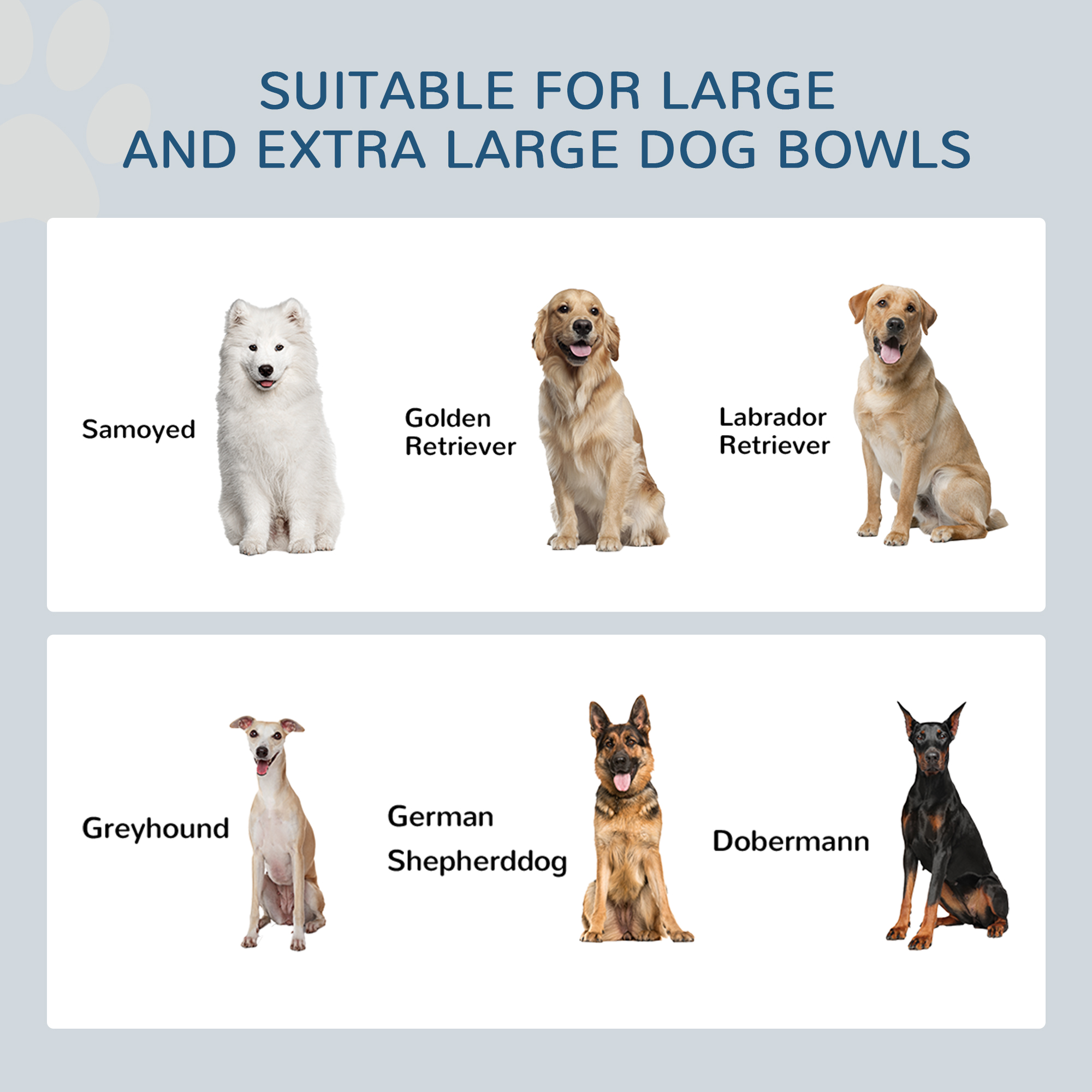 Make mealtime comfortable for your large dog with the elevated PawHut pet feeder, designed for pets with a shoulder height of 50-65 cm to prevent bending that can strain their back and spine. This feeder includes a slow feeding feature for controlled eating and a semi-automatic function for easy meal dispensing. Plus, it comes with a hidden cabinet to keep all of your pet's essentials organised and within reach for a seamless feeding experience.