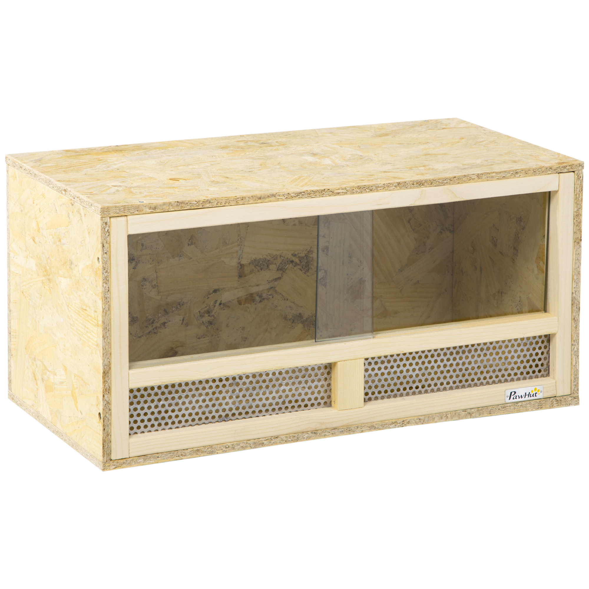 Reptiles thrive in their own habitat, that's why this PawHut faunarium tank is the suitable choice. You can create land, water or emulate a rainforest by yourself, making reptiles feel right at home. Breathable mesh panels for proper ventilation, keeping pets cool when inside, whilst the OSB panels enhance stability. The large glass door lets you watch them in their natural surroundings. For more heat, place a heating pad at the bottom; whatever living space they need, it can be created.