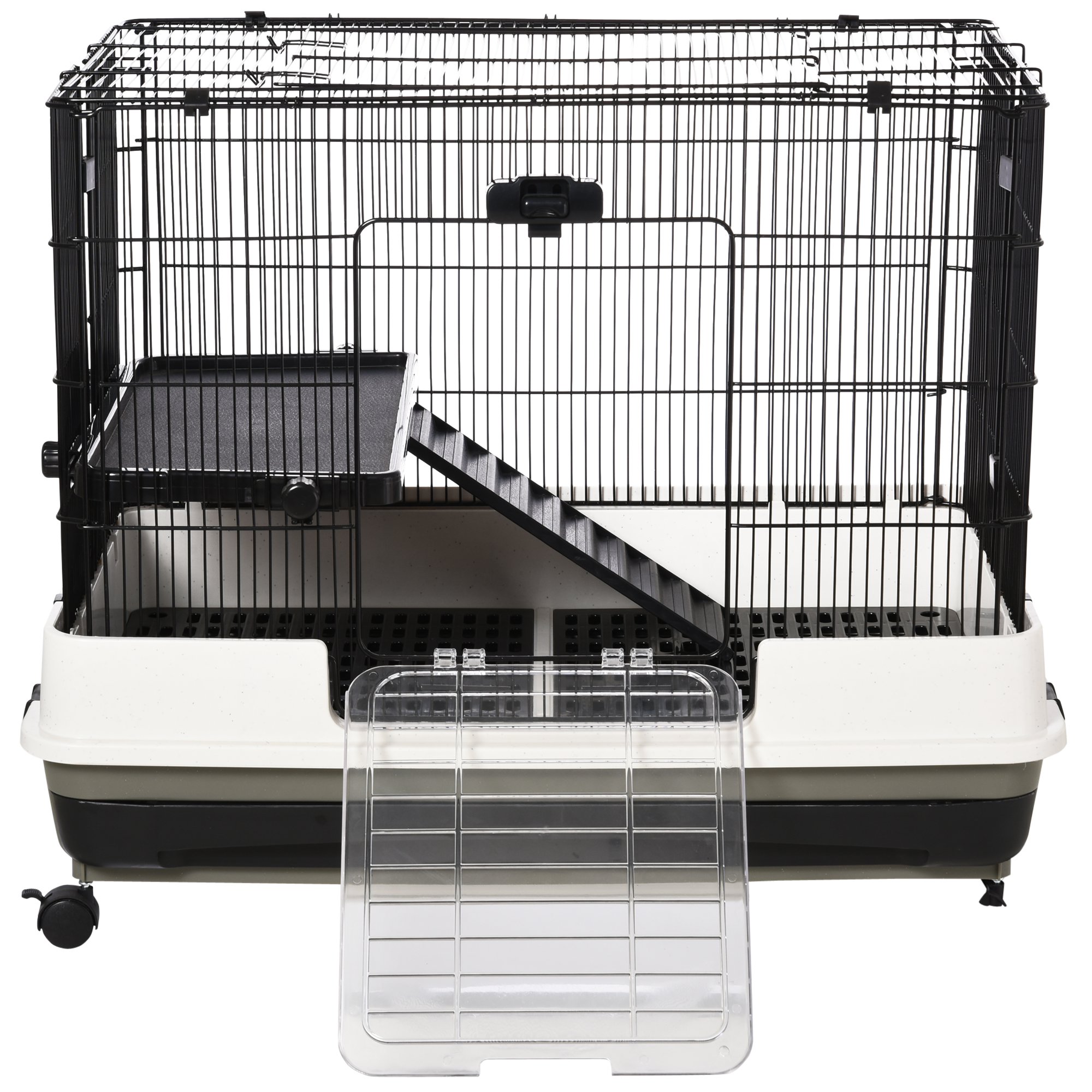 This PawHut cage is the perfect home for small animals like rats. It features four wheels to move around easily, and its slightly elevated design gives some viewing height for your pets whilst inside. Its deep base allows easy collection of litter and bedding, with the removable tray making it easy to clean. Inside a ramp and platform sits so they can move about, with a large door for easy access. It's finished with a metal cage for security, which allows fresh air to pass through and preventing them feeling trapped inside.