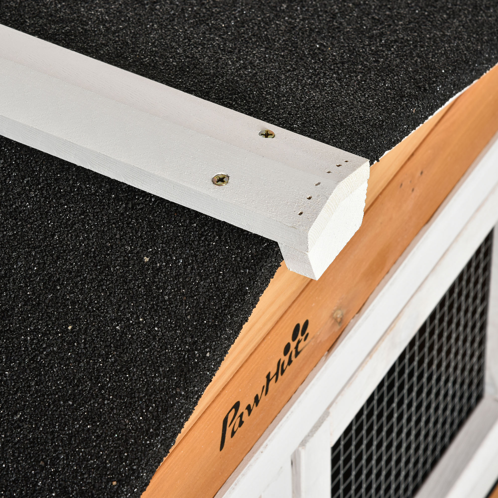 A wonderful resting space for rabbits and other small pets – this spacious rabbit cage from PawHut consists of two floors with a private house and a guinea pig run – they'll roam easily using the ramp. Made from solid fir wood, the indoor guinea pig cage is covered in water-resistant paint for protection against wet weather, whilst the tilted asphalt roof ensures the area is dry. Watch your pets through the mesh wire, which keeps the area ventilated.