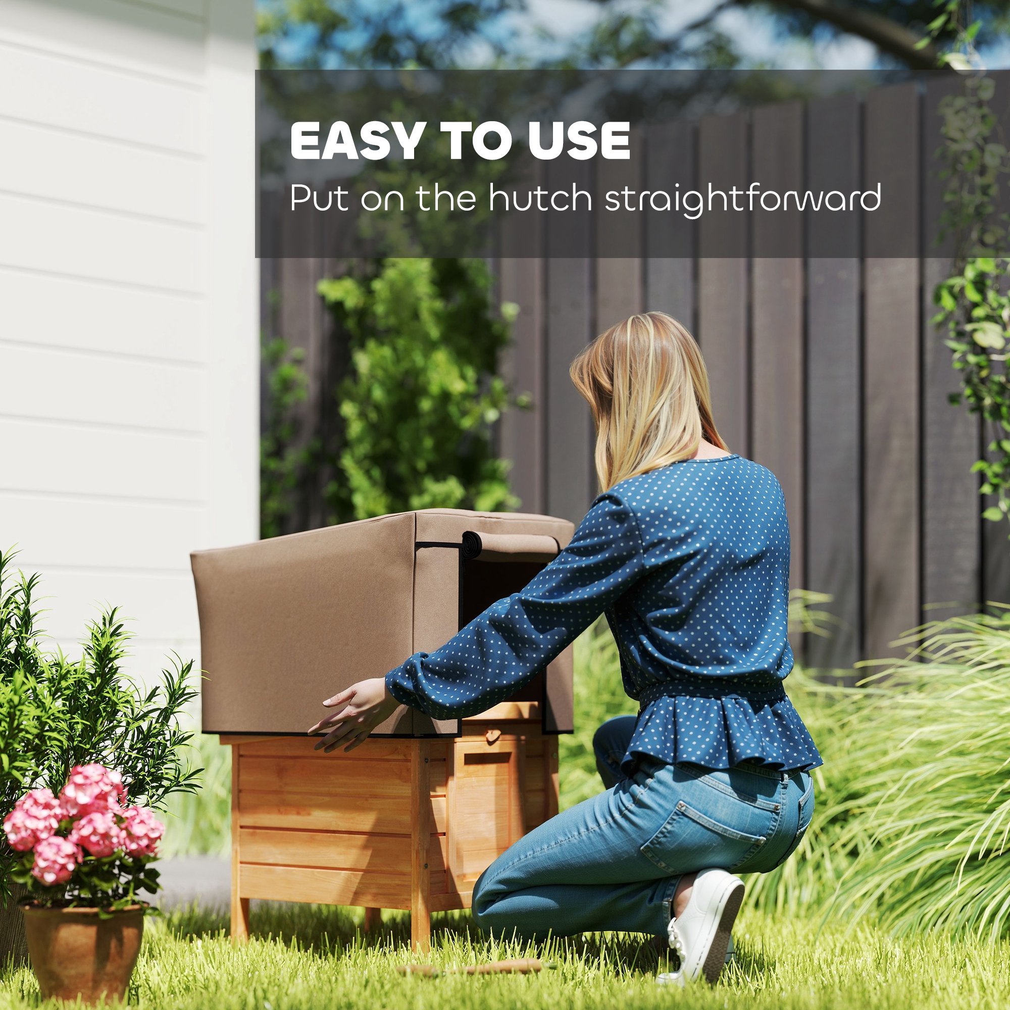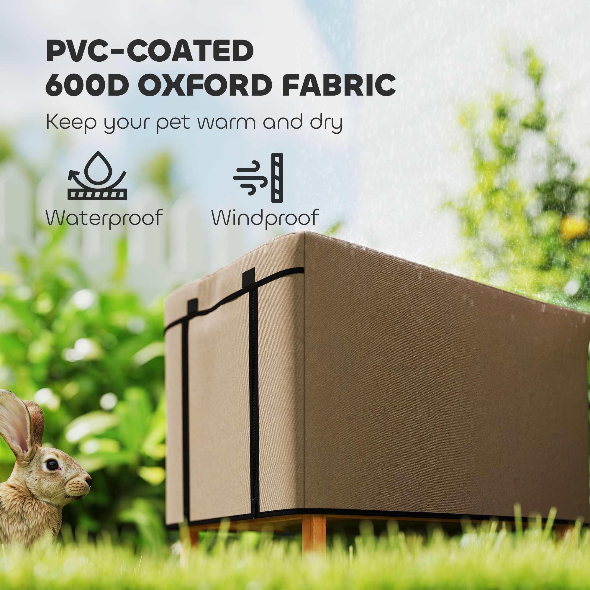 The PawHut rabbit hutch cover is the right accessory for your X-D2-0047 hutch! Made from 600D Plastic-coated oxford fabric, it provides excellent insulation, keeping your pet warm and dry. It wraps securely around the hutch on all four sides, ensuring a snug fit. The convenient touch fasteners make it easy to access your rabbit without having to remove the cover, saving you time and hassle. Whether it's rain or chilly air, this cover helps create a comfortable space for your pet!