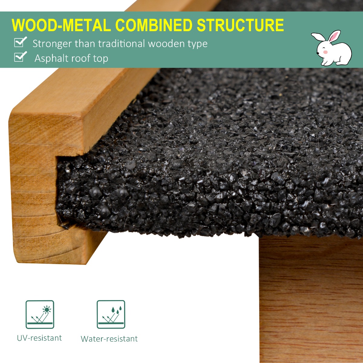 - Anti-UV and weather resistant asphalt roof protects your pets from harsh weather elements
