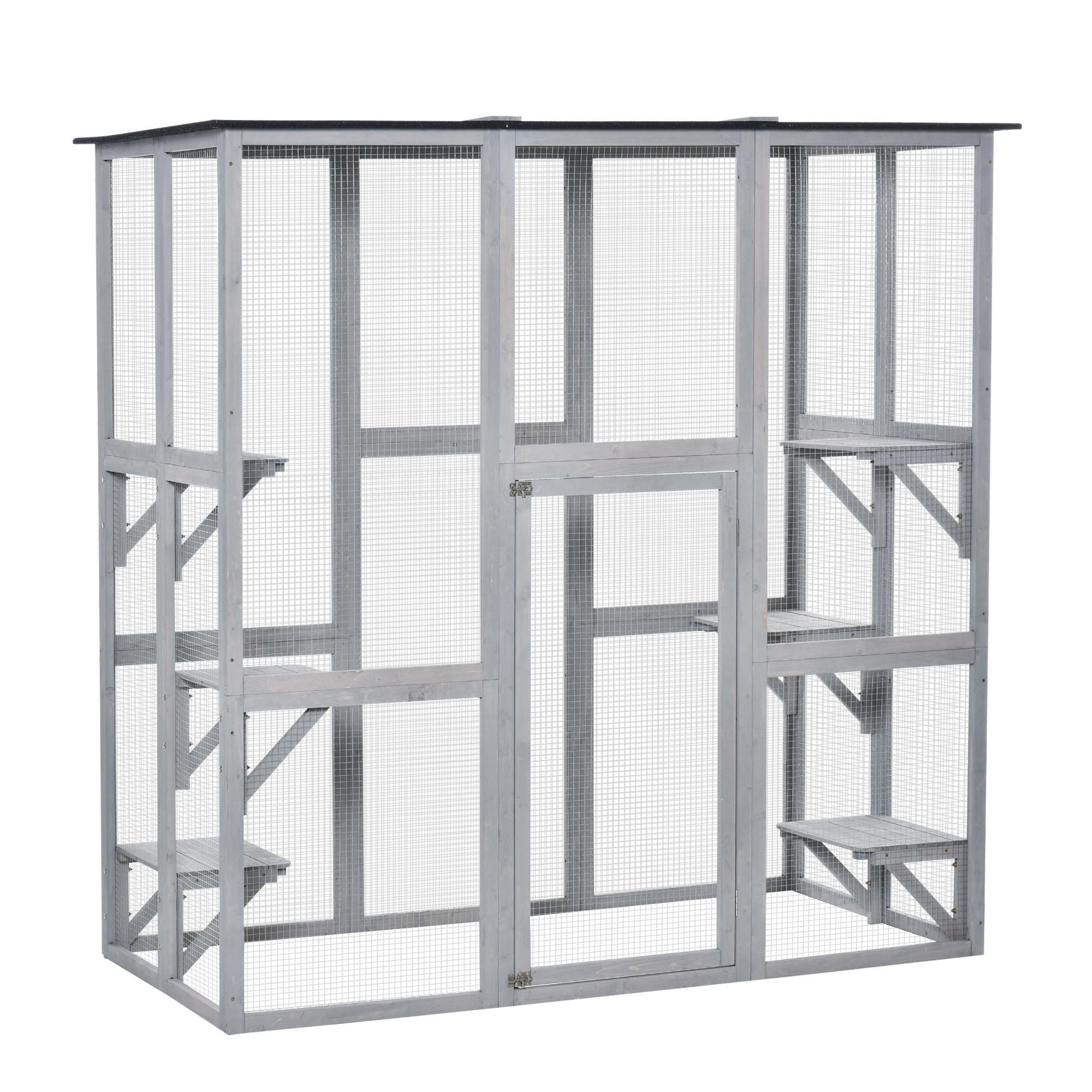 Transform your garden into a feline paradise with the PawHut catio cat outdoor enclosure. Imagine your cats exploring a spacious multi-cat playground, where they can climb and relax without stress. The fully enclosed cat enclosure, crafted with solid wire mesh, ensures their safety while you unwind. With a waterproof asphalt roof and solid fir frame, your cats stay dry and content in any weather, enhancing your peace of mind.
