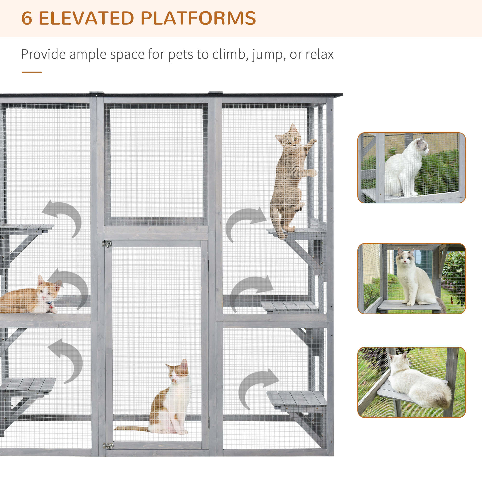- Spacious catio with multi-level platforms for multiple cats