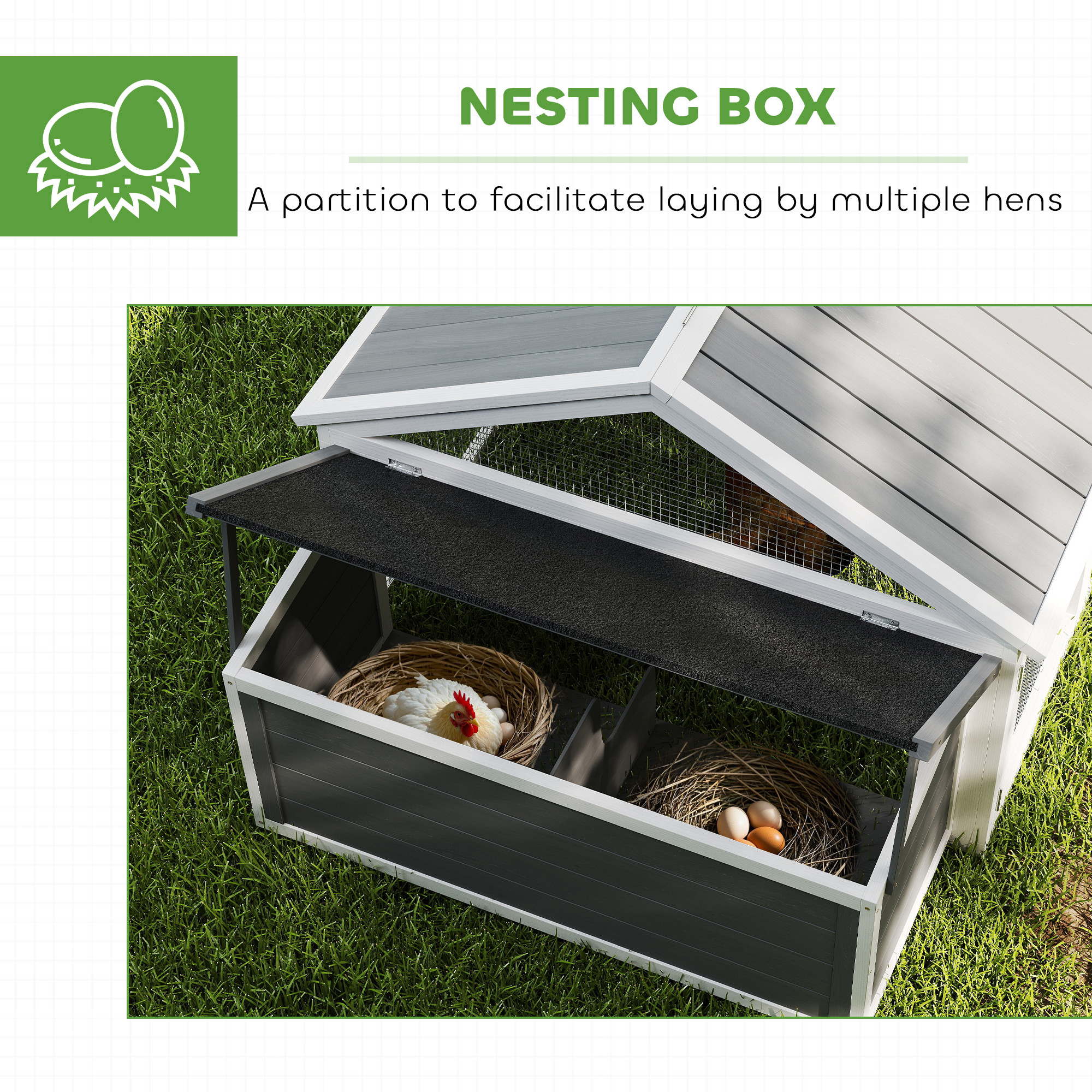 - A nesting box included for keeping eggs