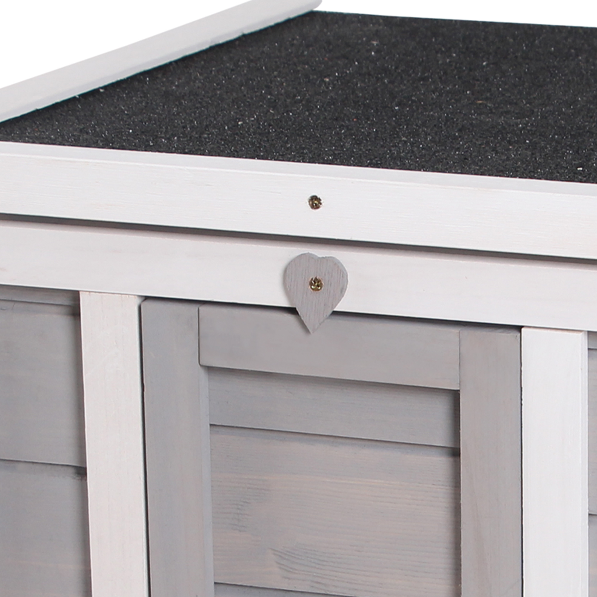 Give your small pets a cozy, secure haven with the PawHut rabbit hutch, designed for those who cherish their furry mates. This thoughtfully crafted shelter features a ramp-style front door for easy access with a lock for added safety. The asphalt roof shields them from harsh weather, while its openable design simplifies cleaning. Elevated to prevent cold and dampness, it ensures comfort. Made from sturdy fir wood, this compact hutch is perfect for outdoors, blending protection with convenience.