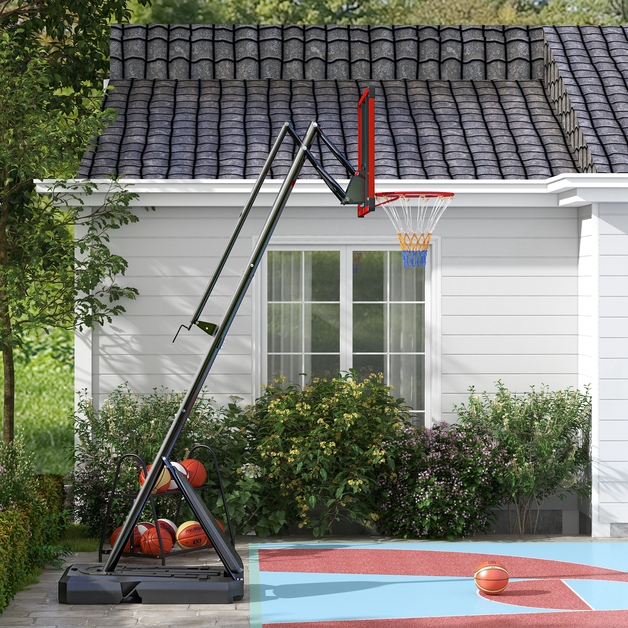 Enjoy shooting hoops with this basketball net and stand. It has an adjustable height, making it suitable for all ages – everyone can join the fun. A steel frame, a high-strength PC backboard and a basketball net, while the base can be filled with water or sand, keeping the basketball hoop firmly in place. Wheels at the bottom let you move the stand easily. Play on your own or with others; either way, you'll enjoy the swooshing sound of the ball passing through the net.