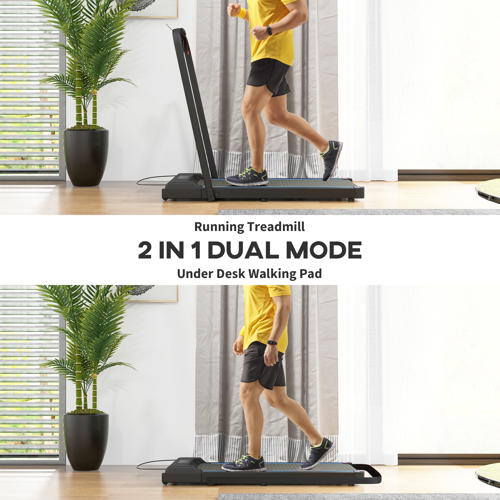 Introducing the SPORTNOW treadmill walking machine, letting you lead an active lifestyle from the comforts of home. Its LED monitor tracks time, speed, calories burnt, steps and distance, keeping you on top of your fitness goals. Made with a solid steel frame, the anti-slip surface keeps you safe and secure when exercising, whilst the remote control brings the flat treadmill to a swift stop. Two wheels at the end to move with ease, you can set up anywhere and begin working out!