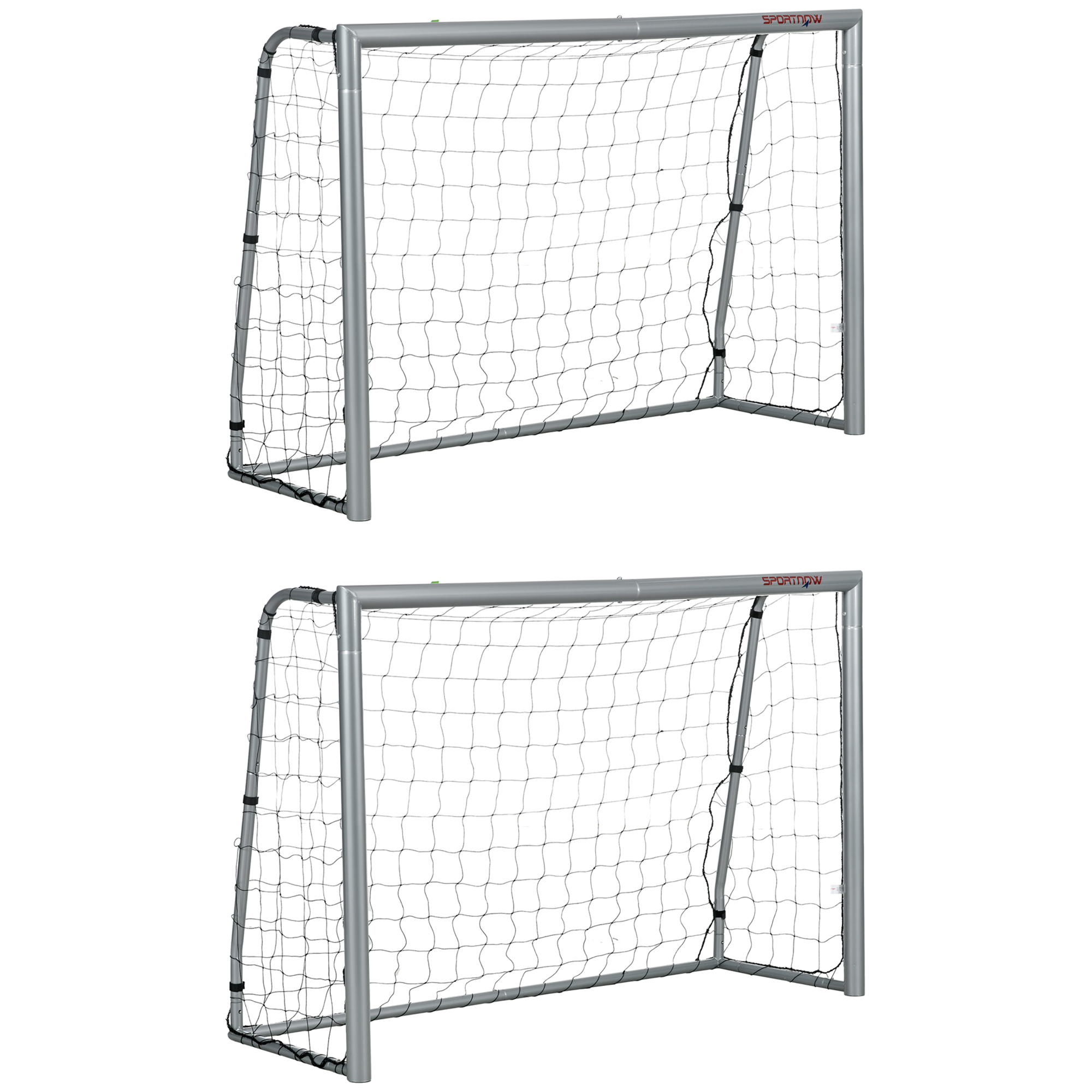 Perfect your technique with our SPORTNOW football net set of two, taking your skills to the next level. Portable and easy to assemble, you'll train at home or take practise with you. Made with a solid steel frame and weather-resistant net, it thrives outdoors, ready for your most powerful shots. Setting up is simple; screw the frame together and add the net. Whether you're honing your skills solo or dominating in competitive matches, this is a must-have for football enthusiasts.
