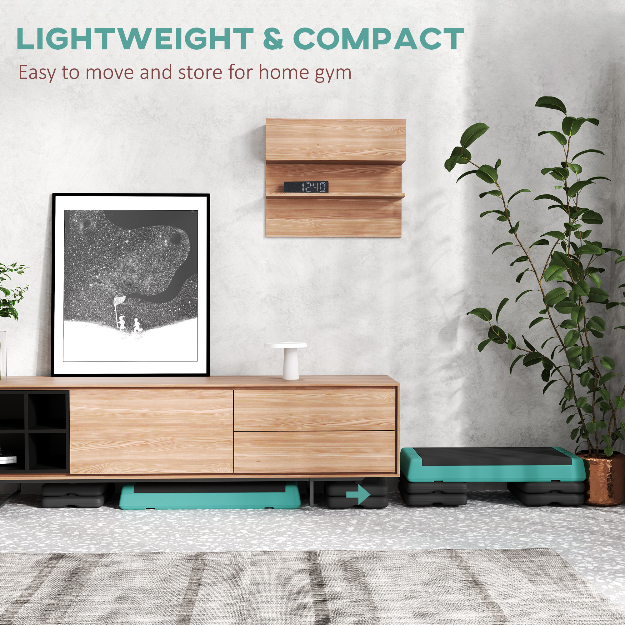 Step up your fitness with the SPORTNOW exercise stepper for home and gym! Adjust between three heights (10.5 cm, 15.5 cm or 20.5 cm) to suit your level. Great for step-ups, squats, push-ups and more to burn calories and build muscle. The anti-skid grooved EVA surface and stable base with non-slip footpads ensure safe workouts. Easily move and store it to save space. Transform any corner into a mini fitness centre at home, the office or anywhere!