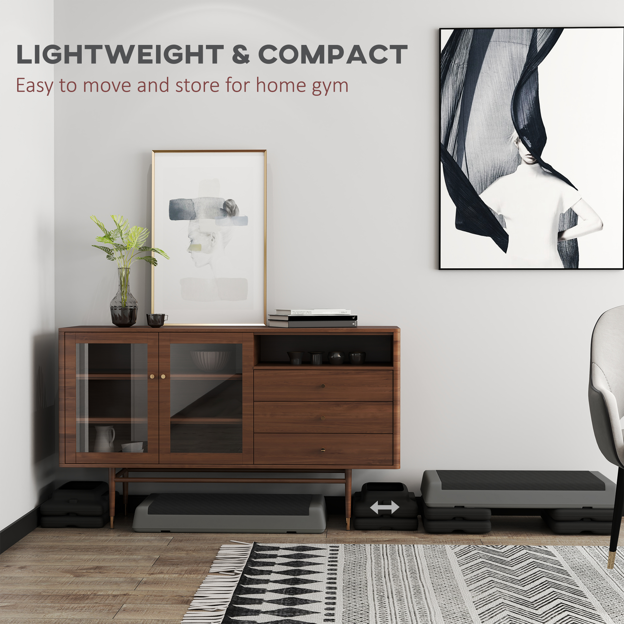 Step up your fitness with the SPORTNOW exercise stepper for home and gym! Adjust between three heights (10.5 cm, 15.5 cm or 20.5 cm) to suit your level. Great for step-ups, squats, push-ups and more to burn calories and build muscle. The anti-skid grooved EVA surface and stable base with non-slip footpads ensure safe workouts. Easily move and store it to save space. Transform any corner into a mini fitness centre at home, the office or anywhere!