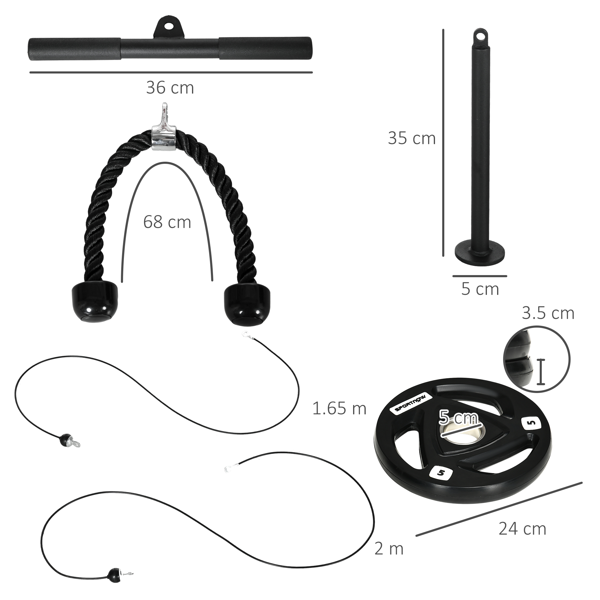 This versatile SPORTNOW lat pull down machine set is designed to enhance your strength training routine. With adjustable cables and smooth pulley operation, it allows for a wide range of exercises targeting various muscle groups. The compact design and easy assembly make it great for home gyms with limited space. Improve your fitness and achieve your goals with this reliable and efficient system. Don't miss out on this opportunity to take your workouts to the next level!