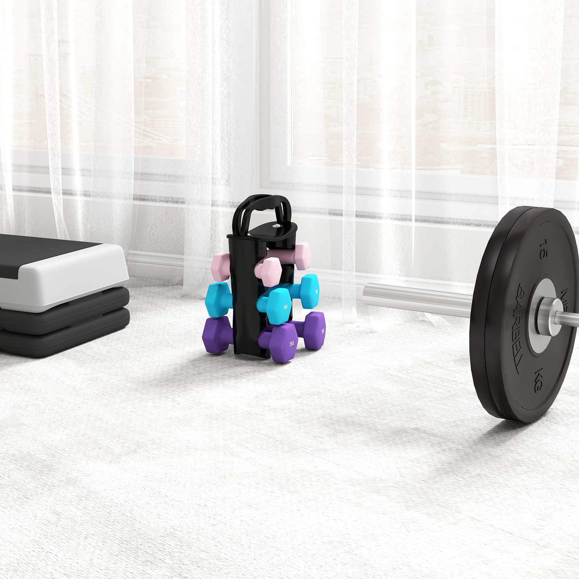 Endless training possibilities await with the SPORTNOW dumbbell set! Great for beginners or experienced lifters, these weights – 1kg, 2kg and 3kg pairs – cater to all your workout needs, including arm curls, lunges, shoulder presses and more! After your workout, place them on the compact rack stand with a hexagonal shape to prevent rolling. You can also convert the stand into a kettlebell by adjusting the rotatable legs for even more exercise options.