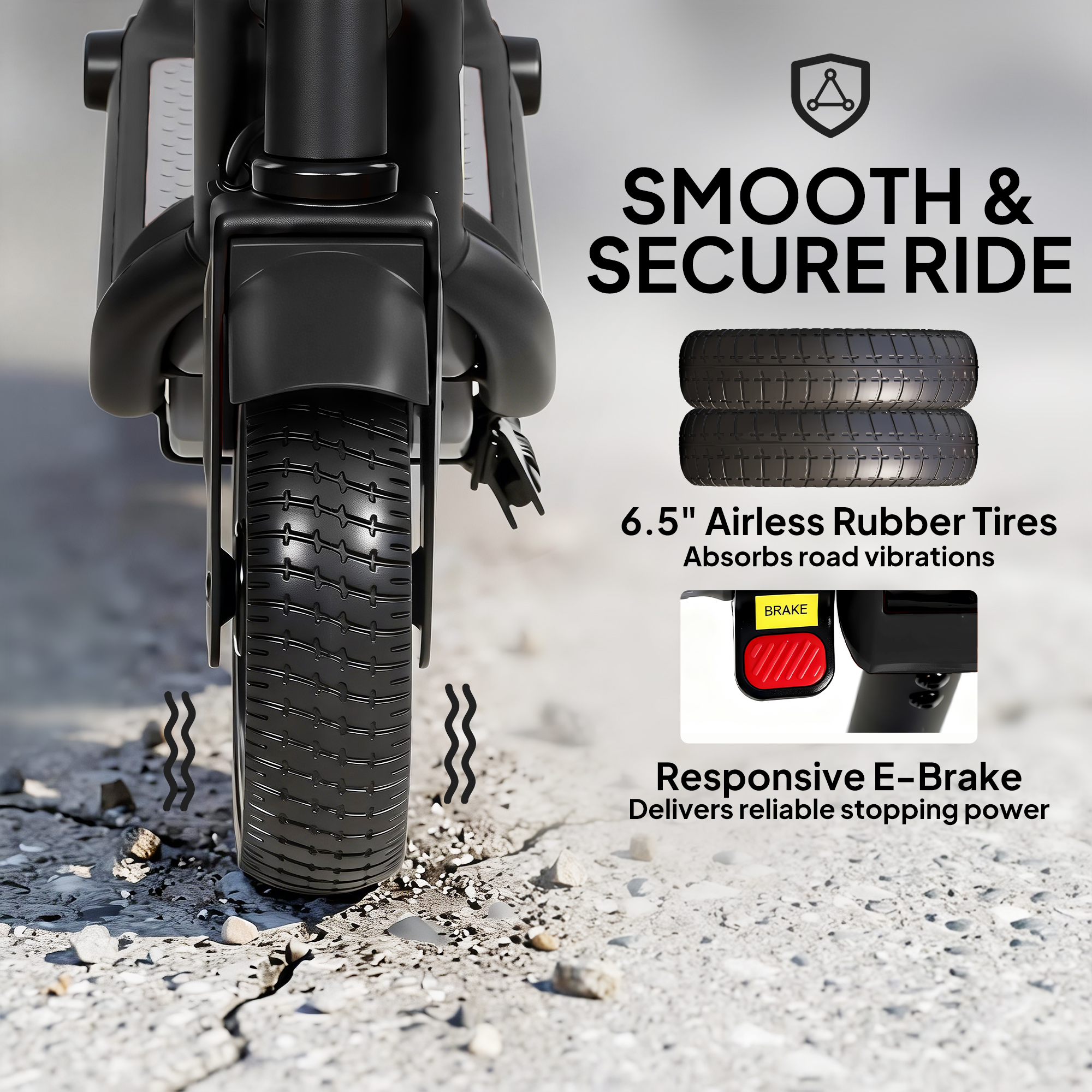 - Ride smoothly with its 6.5" solid rubber tyres
