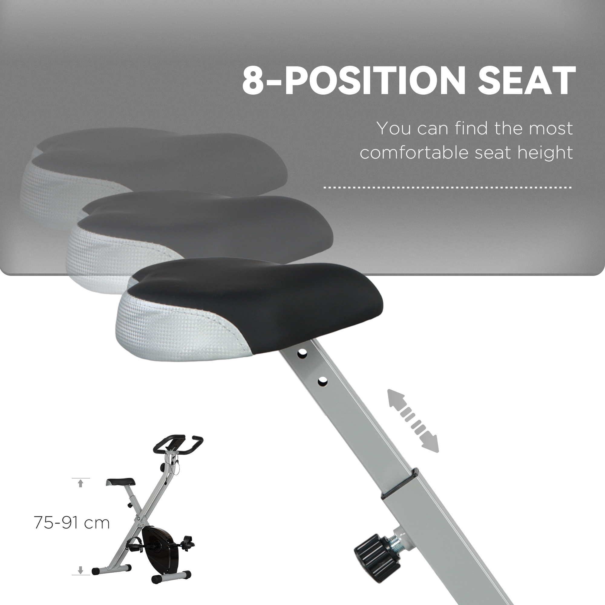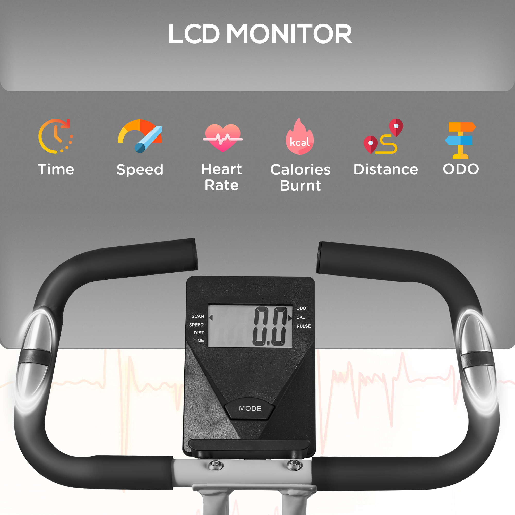 Elevate your home fitness routine with the SPORTNOW exercise bike. With eight levels of magnetic resistance, it offers a silent and personalized workout experience. The adjustable seat ensures comfort, while the LCD monitor keeps you informed of your speed, time, calories burned, distance, and heart rate. Enjoy your favorite shows with the built-in phone or tablet holder. Once your session is complete, easily fold the bike for convenient storage, making it a seamless addition to your home.