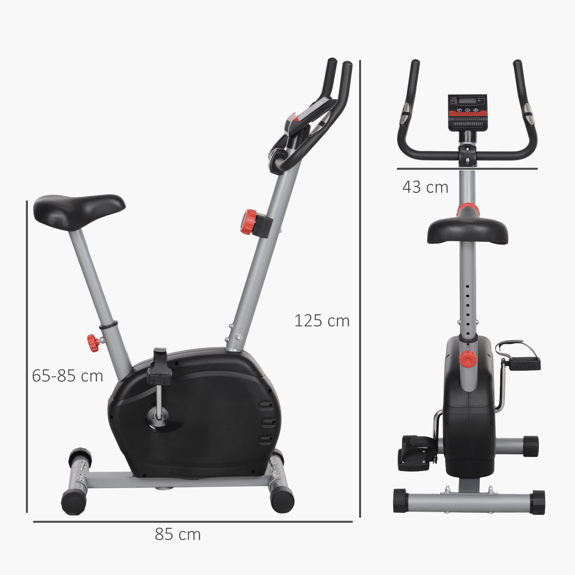 Stay active at home with the SPORTNOW exercise bike, offering eight levels of magnetic resistance for a silent, customised workout, suitable for all fitness levels. The seat adjusts to eight different heights for a good fit. Track your progress on the LCD monitor, displaying speed, time, calories burned, distance and heart rate. Brilliant for your home fitness routines, this stationary bike fits seamlessly into your space, ensuring an engaging exercise session every time.
