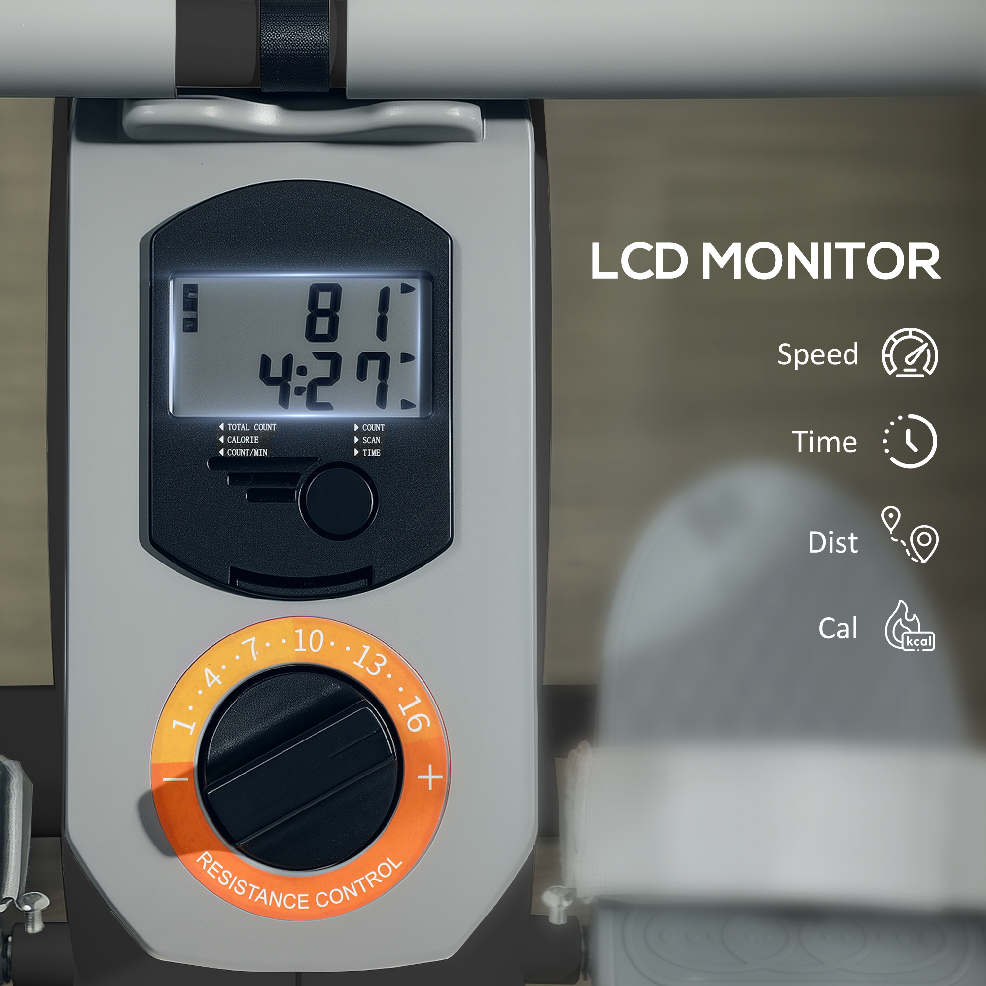 Boost your cardio, muscle endurance and posture with the SPORTNOW rowing machine. With 16 levels of quiet magnetic resistance, it offers a customisable workout. The LCD monitor tracks time, speed, distance and calories to help you track your fitness goals. A phone/tablet holder keeps you entertained as you train. Store it upright to save space. A great addition to your home gym, keeping you fit without leaving the house.