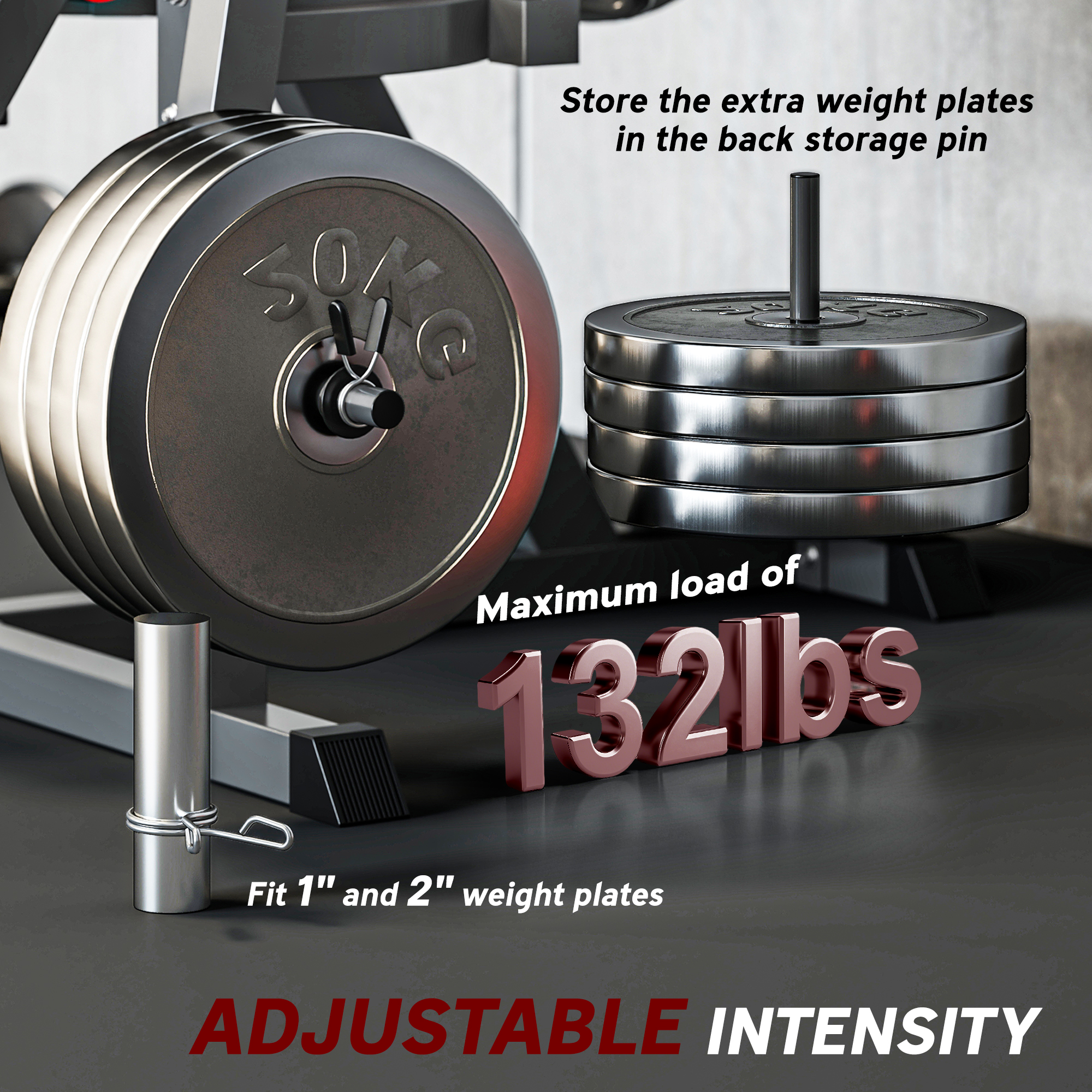 - Accommodates 2.5 cm and 5 cm weight plates for tailored intensity, max load 60 kg