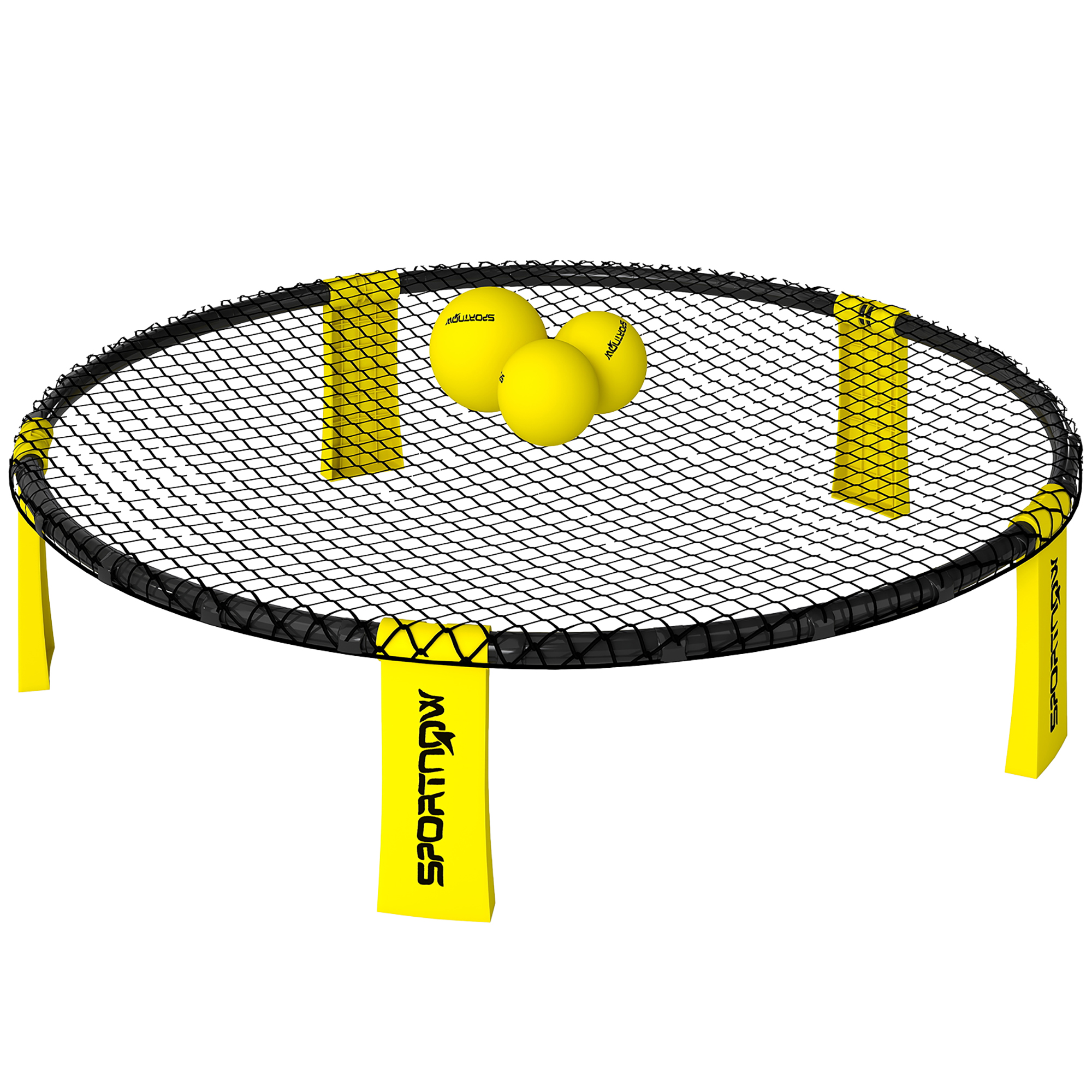 Unleash endless fun with the SPORTNOW spike game set! Its foldable legs ensure stability during play and tuck away for easy storage in your trunk or cupboard. Crafted with a high-elastic polyester fabric net, it remains taut for vigorous games. Excellent for lively gatherings at the beach or in the garden, this ball games set is a must-have for spirited family and friends' outings.