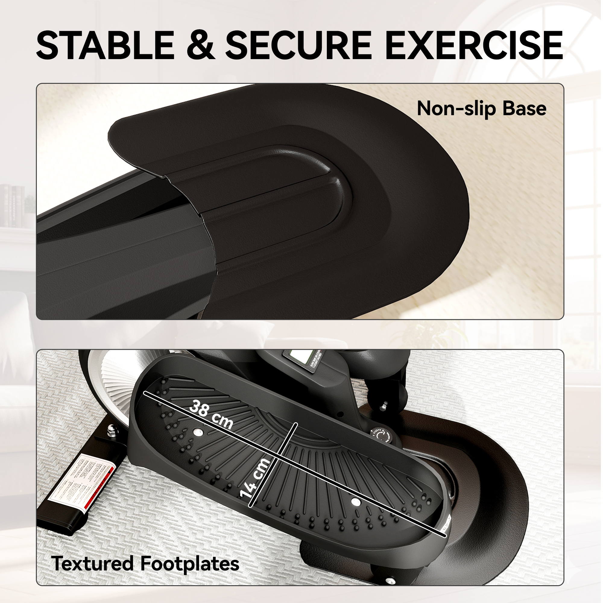 - Features large textured pedals for stable and secure exercise