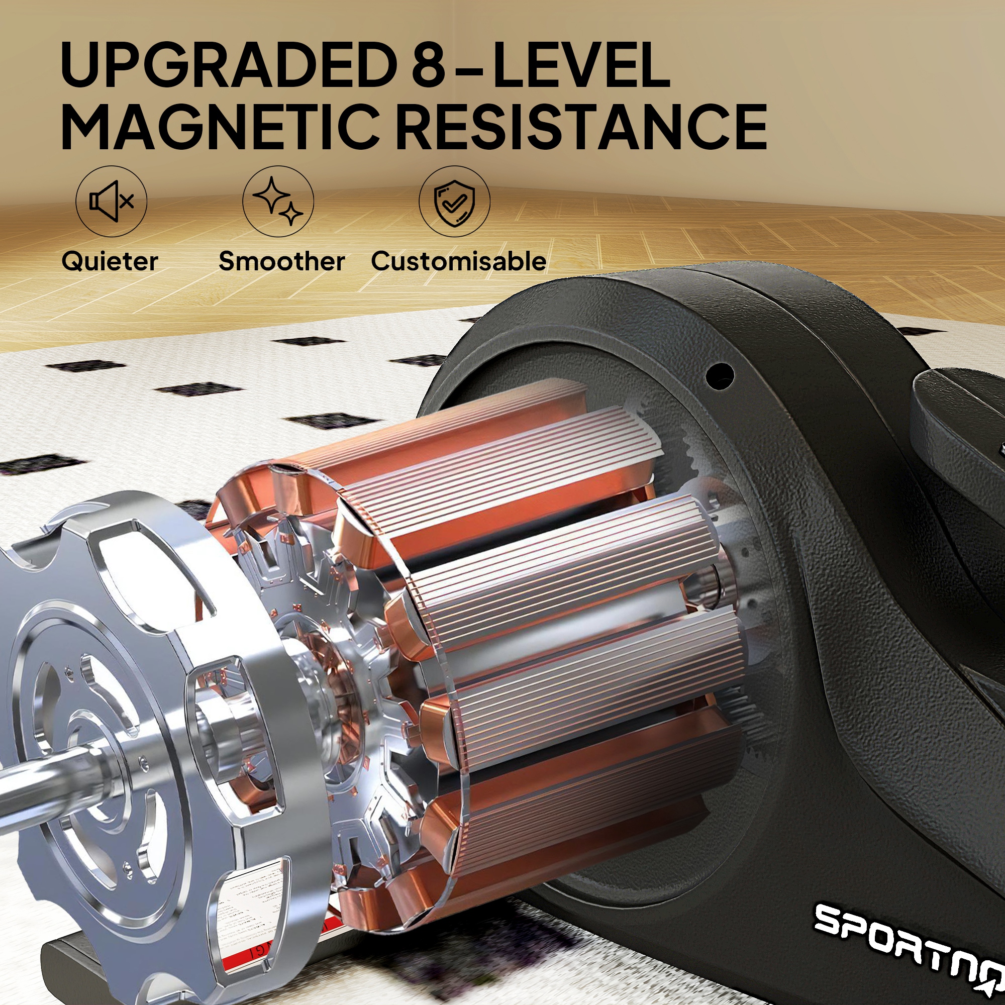 - Offers 8 levels of smooth magnetic resistance for customisable intensity